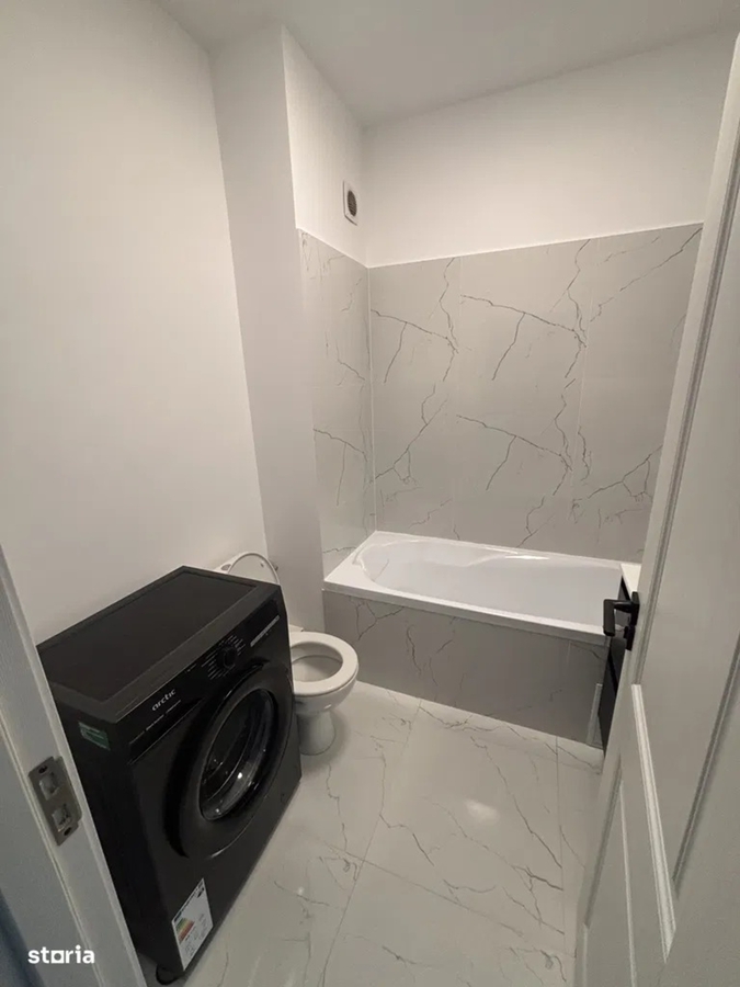 Amenajata cu finisaje tip marmura, cada, mobilier elegant si dotari premium, inclusiv masina de spalat.