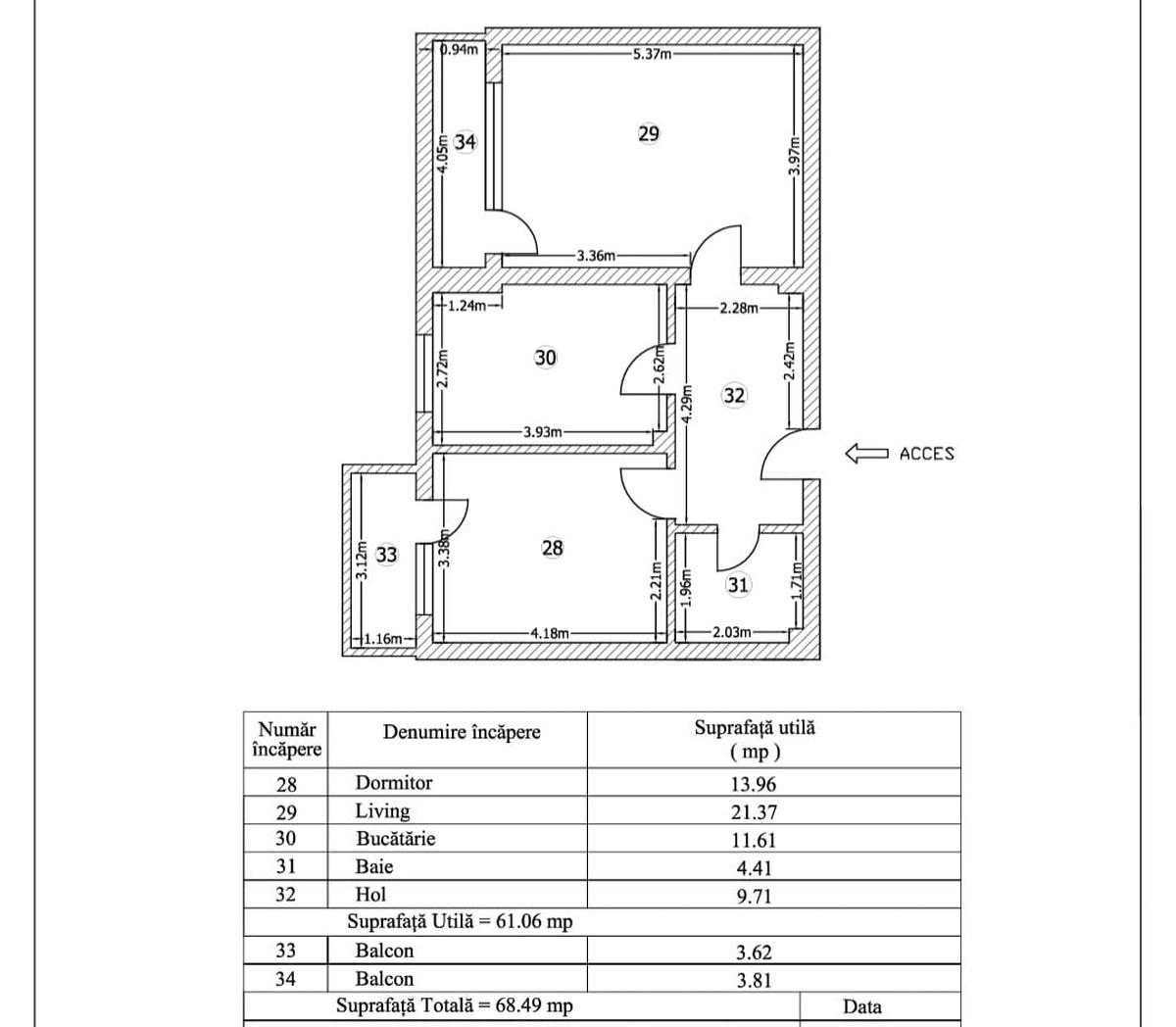 Va propunem in exclusivitate apartament 2 camere decomandat la etajul 2/ D+P+6E+M, in imobil constructie 2015 dotat cu lift si supraveghere video, finisat cu baie echipata, suprafata totala de 68,49 mp, complet mobilat, bucatarie inchisa (spatioasa 11,61mp), 2 balcoane dintre care unul inchis.