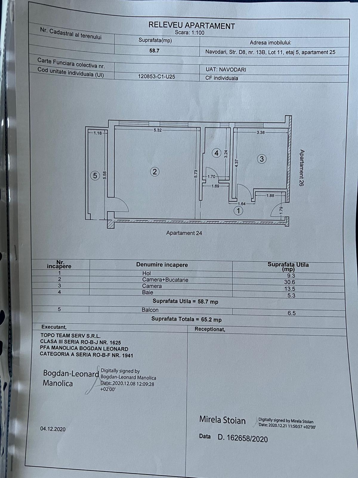proprietar vand apartament 2 camere decomandat, cu suprafata totala de 65.2 mp utili, strada D8 Navodari. Etaj 5 din 6. Utiliat si mobilalat complet nou. 3 minute de plaja.