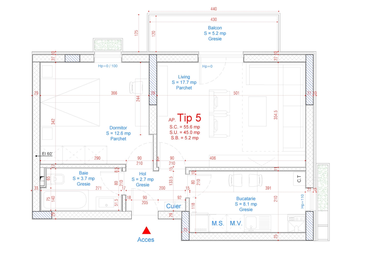 Optiuni interior: Apometre Balcon Centrala termica Contor gaze Inst. electrice noi Inst. sanitare noi Izolatie termica Termopan Usa metalica