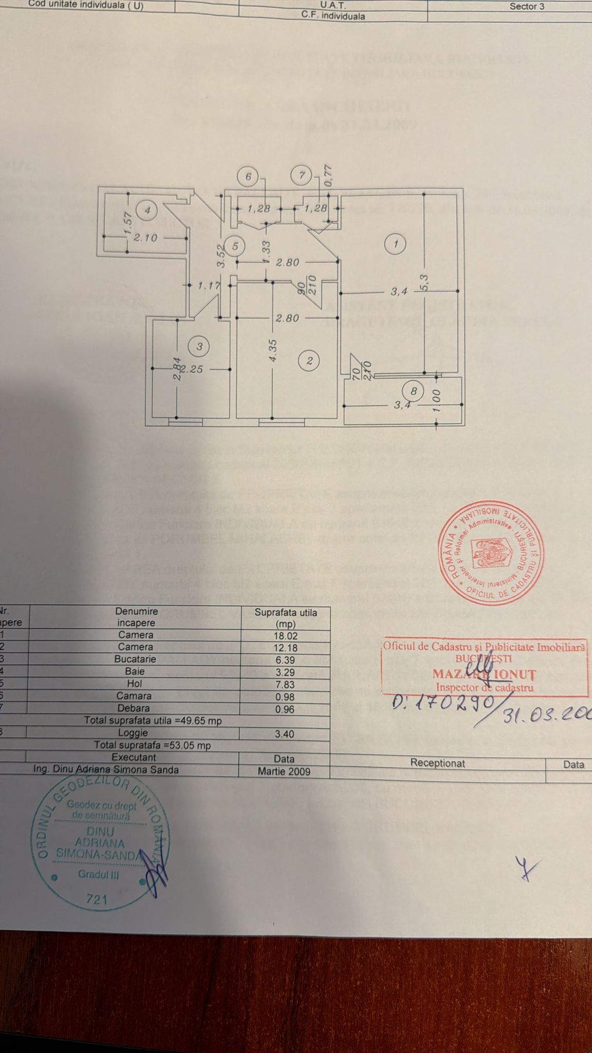 Apartamentul are o suprafata de 53 MP, bloc din 1976, reabilitat,