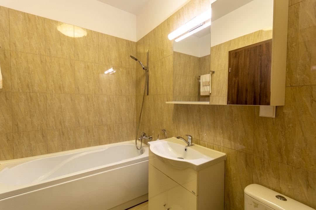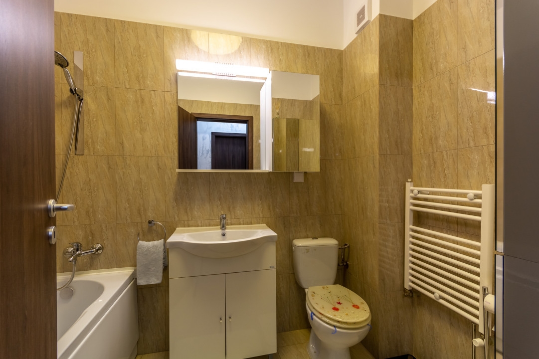 Un apartament unde ai tot ce-ti trebuie langa tine. Pentru cumparaturi ai Lidl si Mega Image, faci un minut pana la ele. Vrei mai mult, ai Selgros. Sau Cora in drum spre casa. Vrei transport public? La 3 minute de bloc ai statia de autobuz si 7 autobuze care trec pe aici, cu o frecventa de 5 minute intre ele. Si doua statii pana la metrou. Pe care daca vrei sa te plimbi putin, le faci in 15 minute de mers pe jos. Si nu oricum, ci pe malul lacului! Da, de acasa pana la metrou, vei merge pe malul lacului. La umbra copacilor. Cu briza lacului in fata. Sa-ti tot incepi ziua asa. Sau sa ti-o termini.