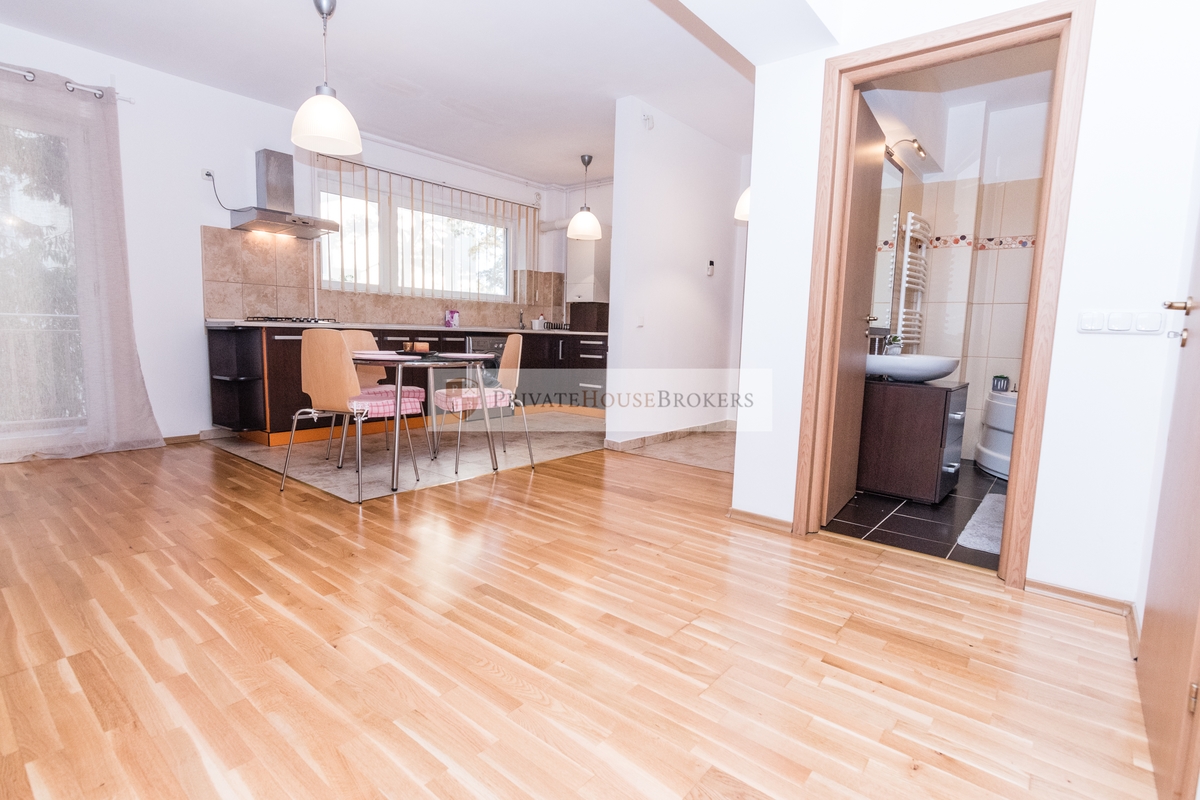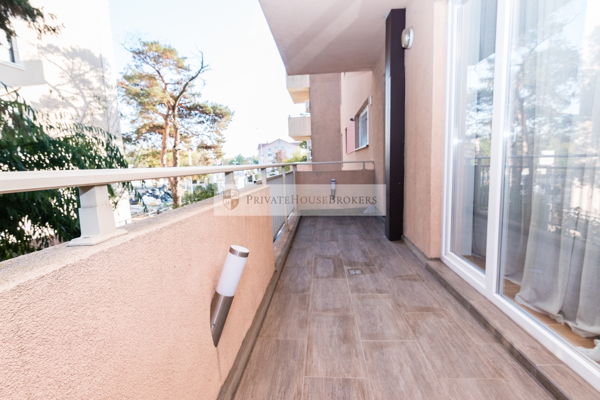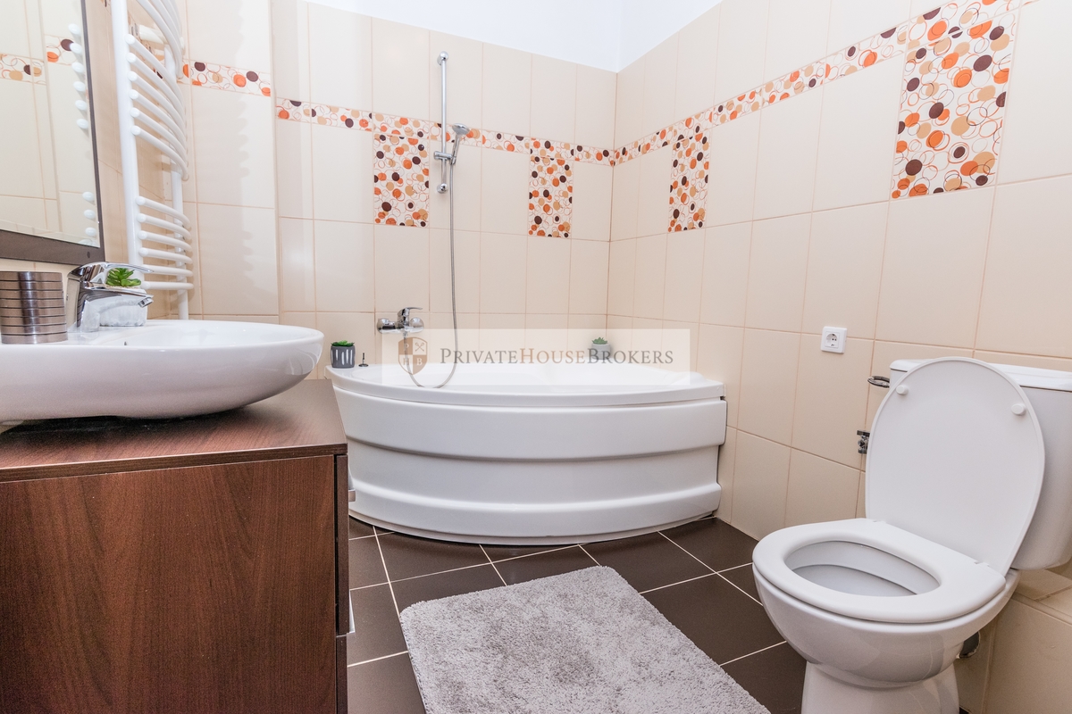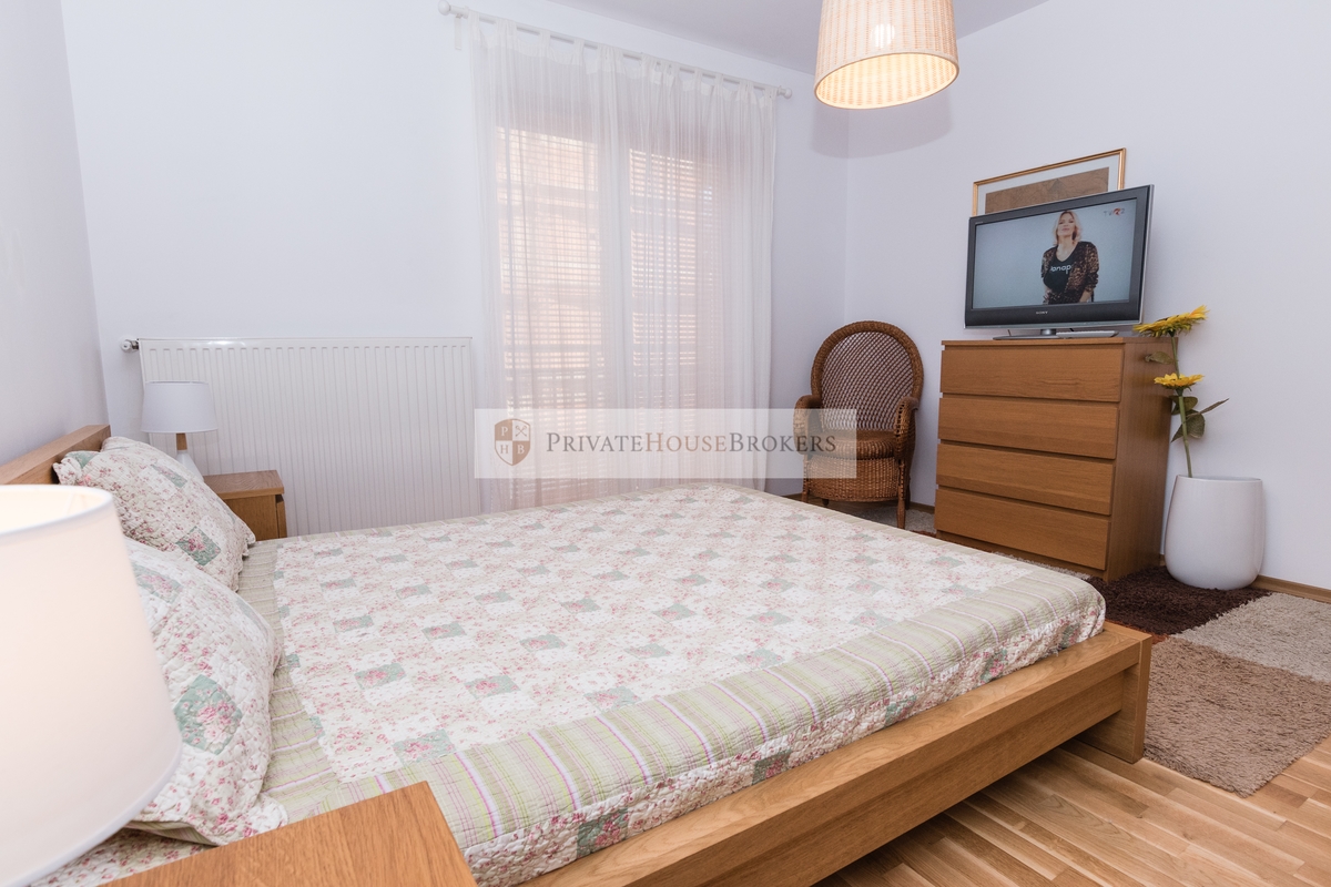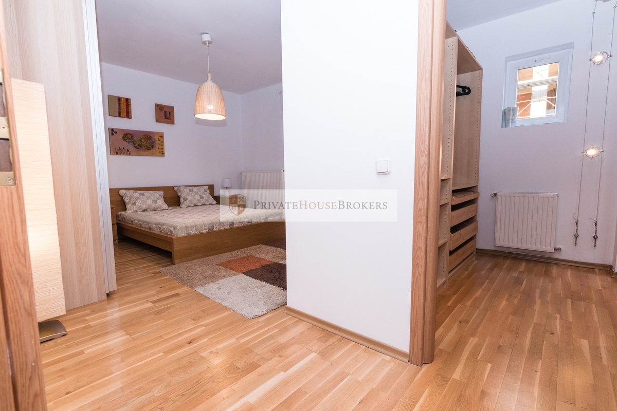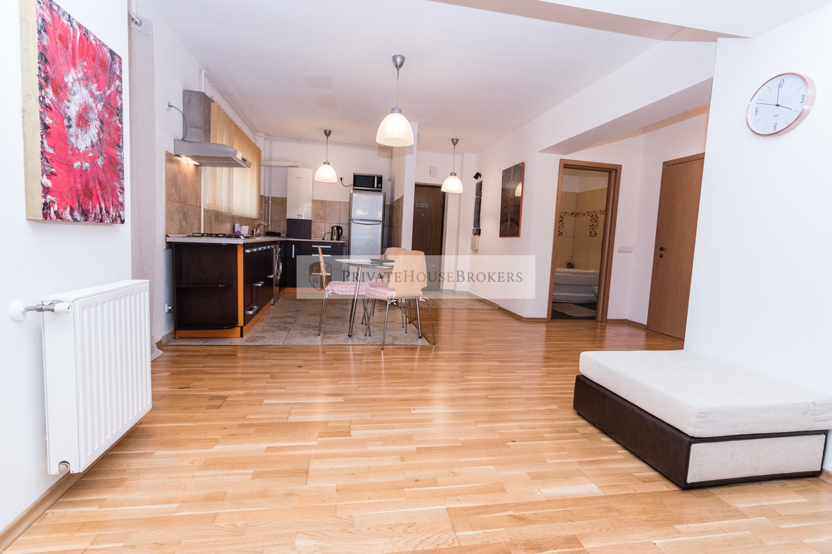 Acest apartament spatios si foarte bine compartimentat este situat la etajul 1 din 6, living si dormitor matrimonial cu dressing, debara, baie cu cada, este semidecomandat si are o suprafata de 73 mp utili interior + 9 mp terasa. Apartamentul se vinde mobilat si utilat complet modern ( exact ca in fotografii ), dispune de centrala proprie de apartament, aer conditionat, televizor, loc de suprateran acoperit.