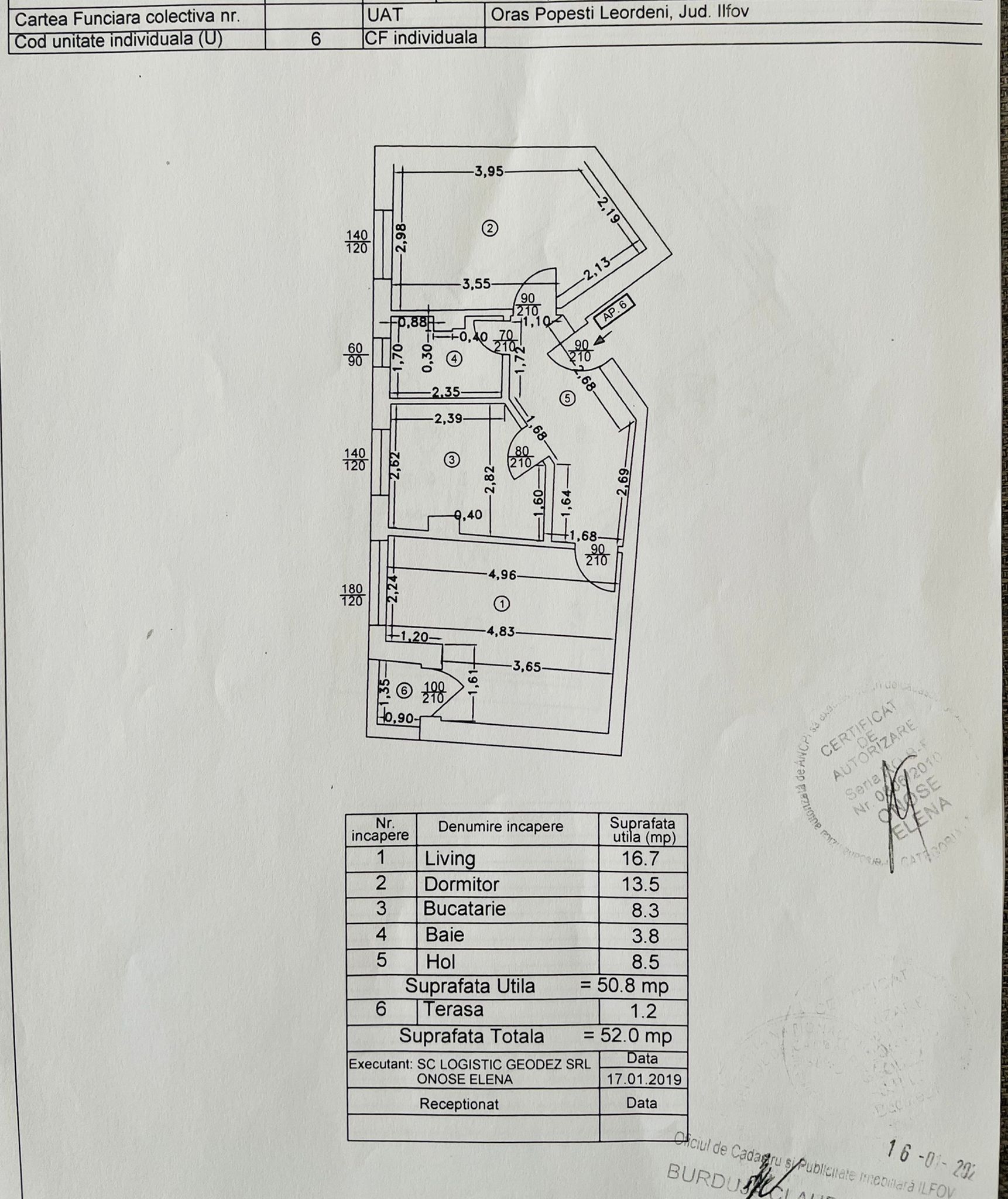 Va prezint spre vanzare un apartament de 2 camere,decomandat,constructie 2019,in suprafata de 50,8 mp utili la care se adauga balconul de 1.2,mp in totatal 52 mp,situat la etajul 2 din 3 ,pozitionat catre Vest,ferit de galagie si trafic cu acces din Str. Popesti Romani in Popesti Leordeni.