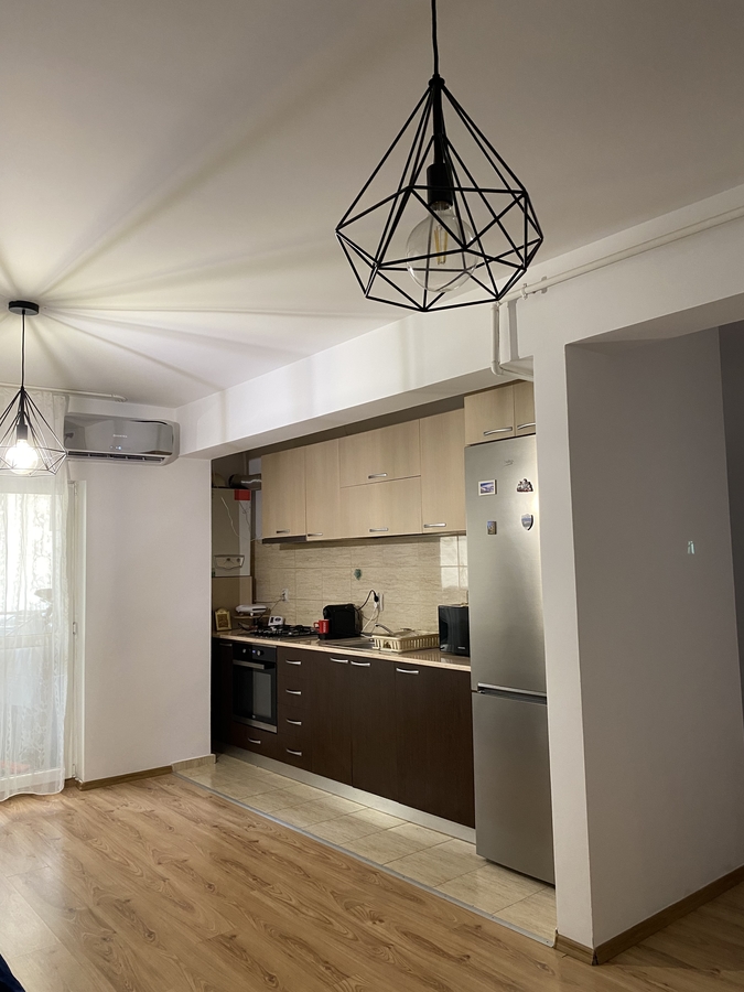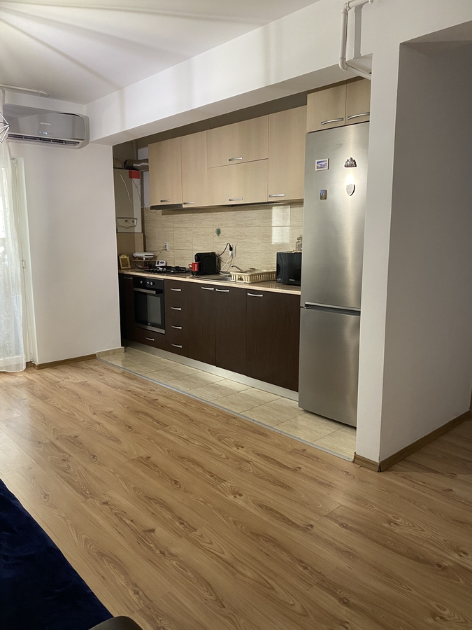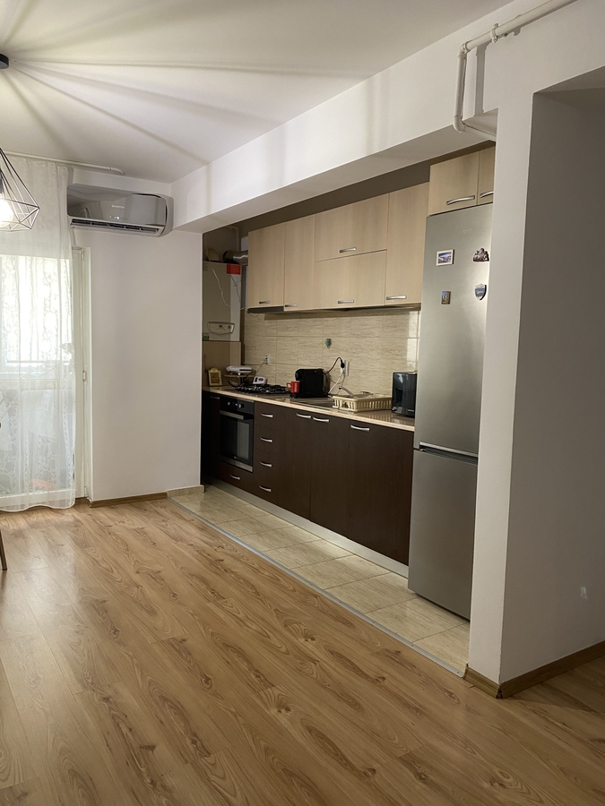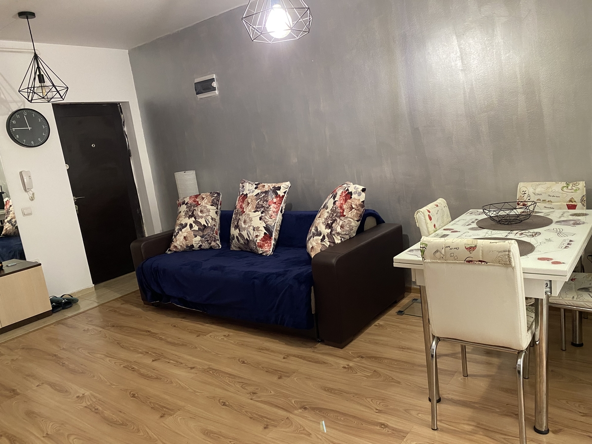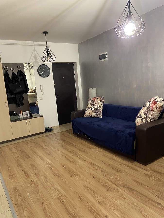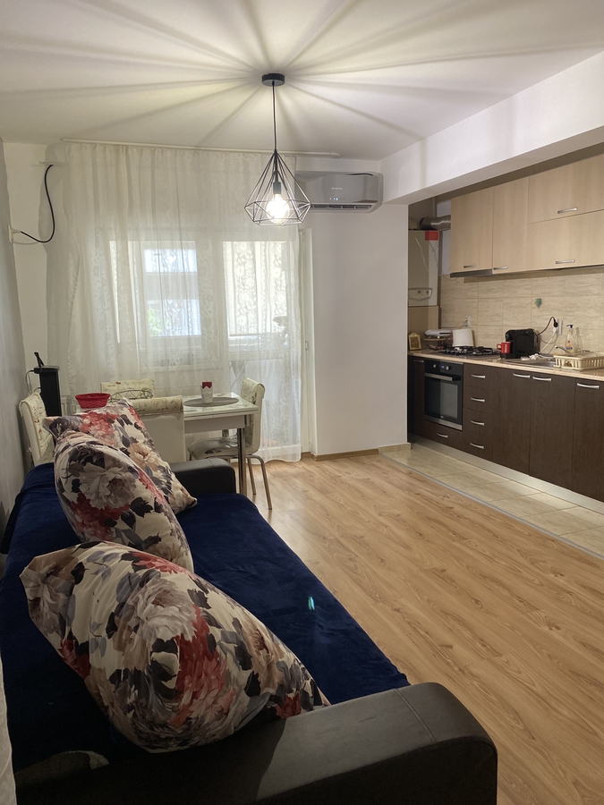 Vand apartament mobilat exact ca in poze,cu doua camere, tip studio, situat la parter inalt, suprafata de 42 mp. Are o sufragerie cu bucatarie, un dormitor, o baie cu geam, balcon spatios. Achizitie prin cash sau orice tip de credit, usor negociabil.