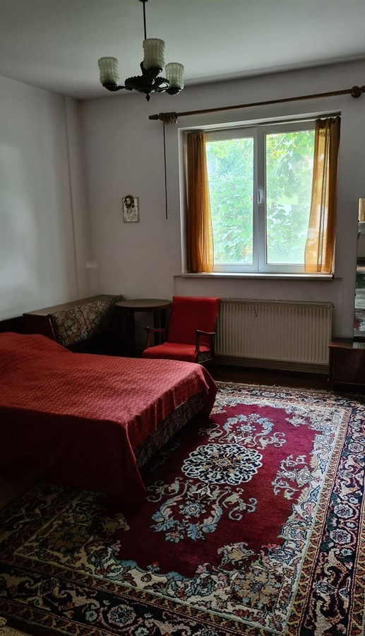 Apartamentul are camere cu tavan inalt (h = 3m) si dispune de usa metalica la intrare, geamuri de termopan Salamander, centrala termica proprie (marca Saunier Duval), parchet din lemn masiv (in ambele camere). Apartamentul ramane dotat cu electrocasnice (frigider, masina de spalat rufe, aragaz si hota) si mobilat asa cum se observa in poze. Cash/Credit, Comision Agentie 2%, pret 57.000 euro.
