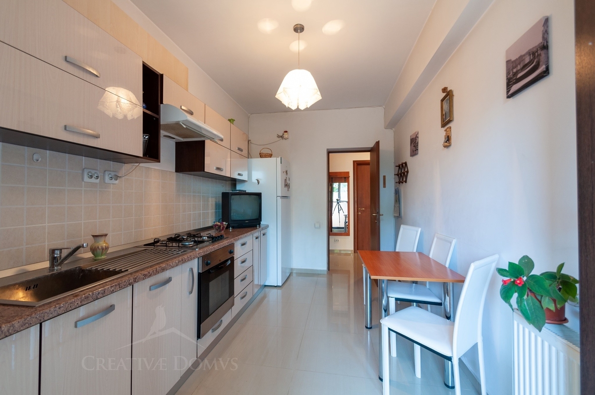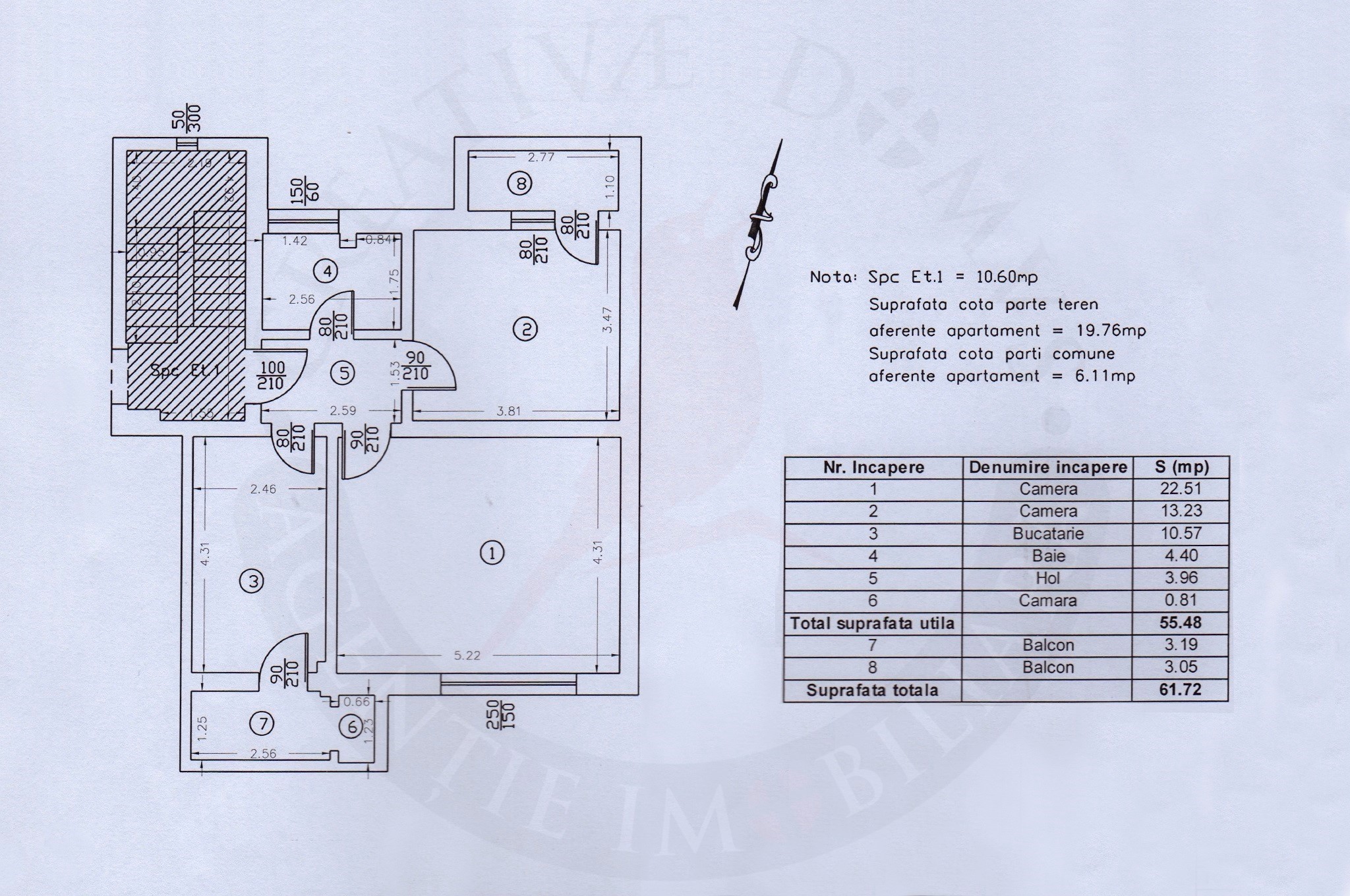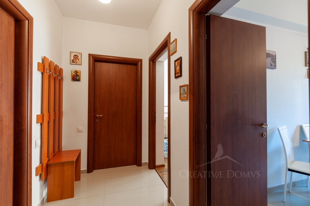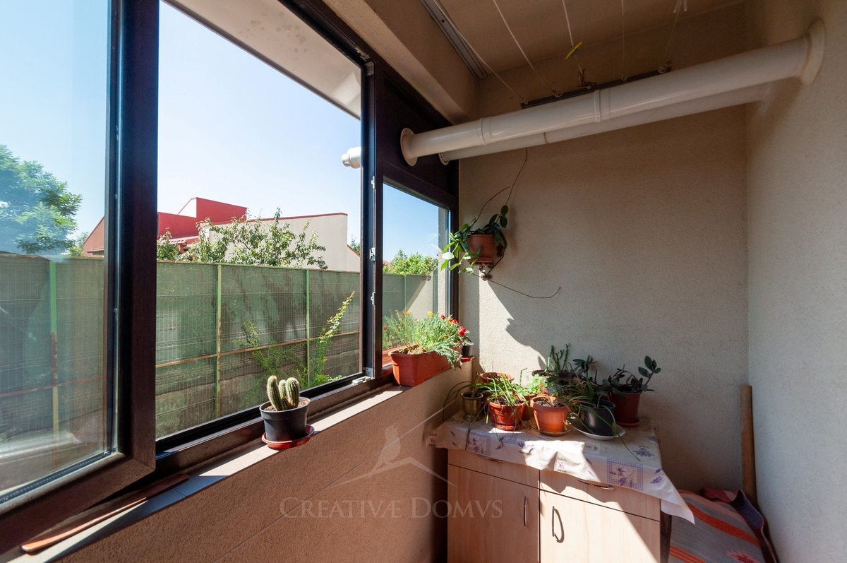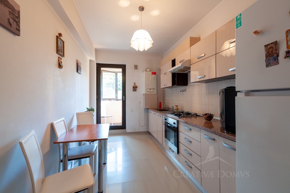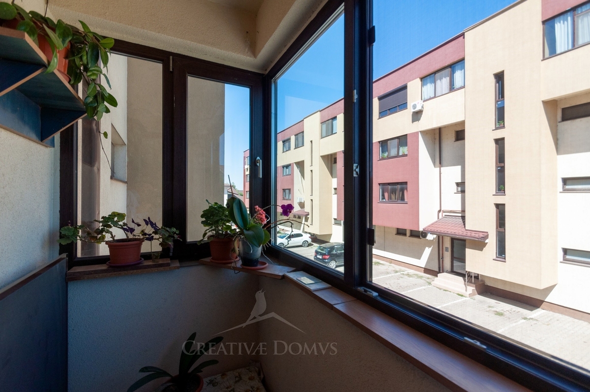 Este compus din doua camere, bucatarie, baie si doua balcoane si, important!, are un loc de parcare (cumparat de proprietar). Suprafata totala este de 61.72 mp, iar cea utila de 55.48 mp, diferenta de 6.24 mp fiind data de cele doua balcoane. Apartamentul are centrala termica proprie, aer conditionat si ferestre cu geam termopan cu tamplarie Veka si QFort. Este bine intretinut, iar asta il face sa fie mai usor de pregatit pentru mutarea noului proprietar. Toti peretii - inclusiv cei interiori - sunt din caramida. In podul blocului exista un spatiu de depozitare pe care il pot folosi toti proprietarii.