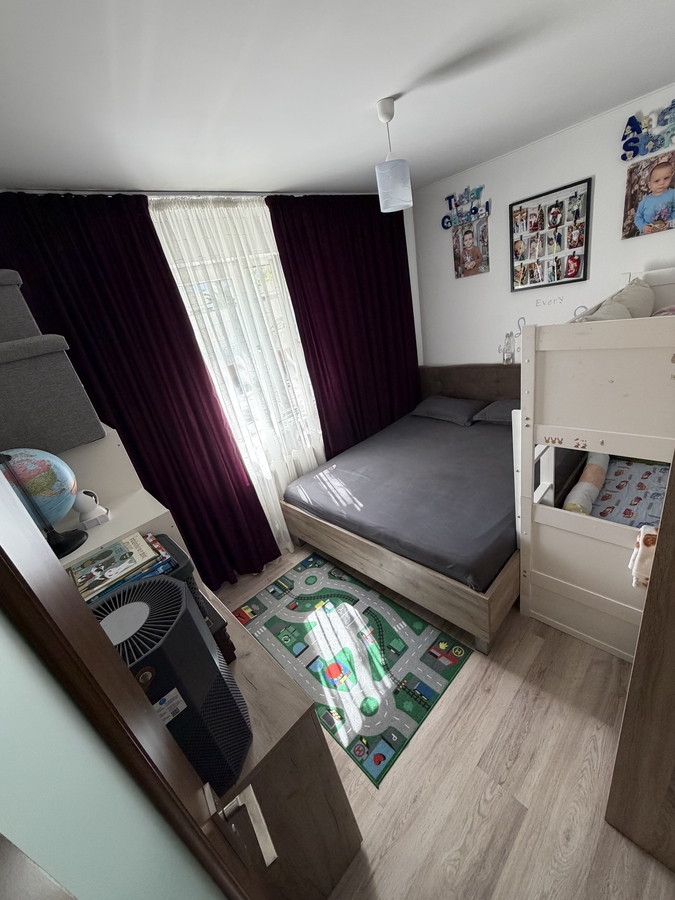 de vanzare un apartament de 2 camere, situat in zona Salaj, pe Aleea Bacau, intr-un bloc anvelopat, la parter, cu gradina si spatii verzi ingrijite de asociatie si o scara foarte curata si bine intretinuta. Locuinta este renovata complet, refacuta integral de la zero, fara a necesita nicio investitie – este pregatita pentru mutare imediata. Instalatiile electrice si sanitare au fost schimbate in totalitate, iar finisajele sunt moderne, realizate cu atentie la detalii. Apartamentul beneficiaza de centrala termica proprie (inlocuita in august 2025), aer conditionat si ofera un nivel ridicat de confort. Se vinde mobilat si utilat complet, exact ca in poze, toate piesele de mobilier si electrocasnicele fiind incluse, astfel incat nu mai este nevoie de investitii suplimentare. Proprietatea dispune si de loc de parcare de la ADP. In apropiere se afla scoala (50 m), gradinita (100 m), magazin Penny (300 m) si Parcul Humulesti (300 m). Zona este linistita, ideala pentru locuit, cu costuri reduse de intretinere.