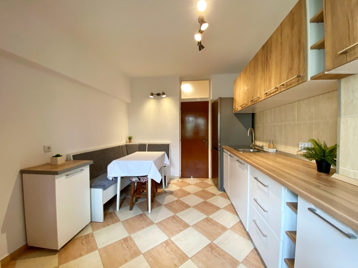 Bucataria este inchisa si foarte spatioasa, perfecta pentru pasionatii de gatit. Tot in bucatarie se afla si o debara incapatoare.