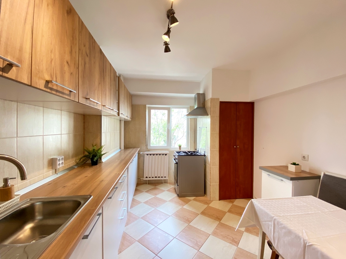 Str. Deleni, ap. 2 cam., decomandat, 55 mpu + 5 mp balcon, bloc 1987 reabilitat 2022, etaj 4/7, renovat, priveliste spate, bucatarie separata, debara, se vinde complet mobilat, comision 2%,