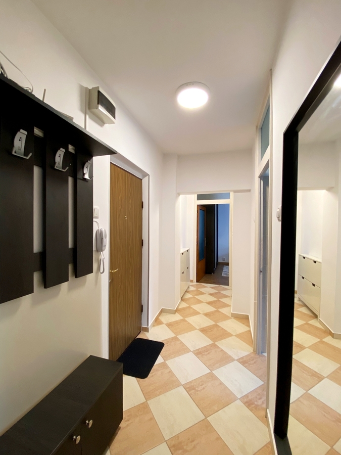 Aerul conditionat este amplasat pe hol si asigura confortul termic in ambele incaperi.