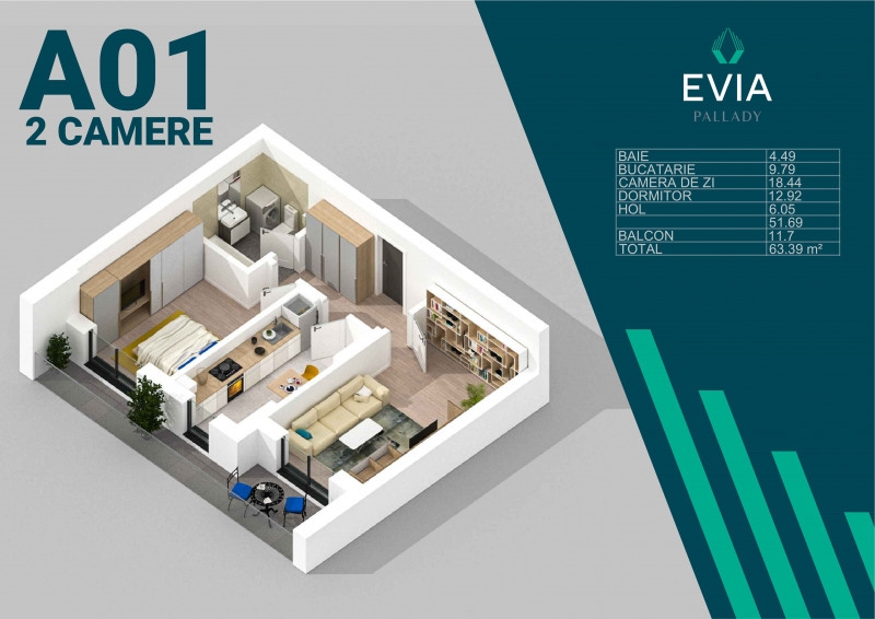 Apartamentul face parte din ansamblul Evia Pallady cu un regim de inaltime P+7E, pozitionat la doar 800 m de metrou Nicolae Teclu, cu acces rapid catre impresionanta zona comerciala aflata in imediata apropiere (IKEA, Auchan, Lidl, Metro, Decathlon, JYSK, Mega Image, Dedeman, Leroy Merlin, Jumbo)