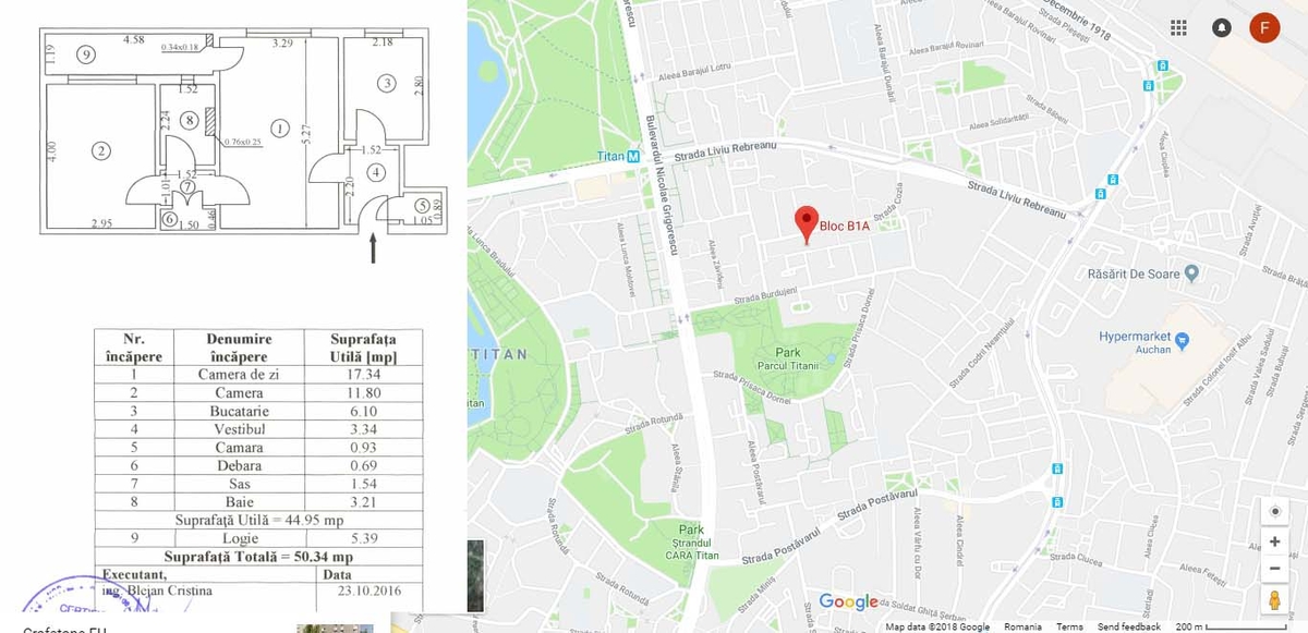 Detali pozitionare : Strada Cozla nr 3 Bl b1 A, Sector 3, Zonat Metrou Titan (700 de metrii pana la metrou) 10 minute pana la Park Lake Mall, 5 minute pana la Auchan Titan. 1 minut pana in parculetul Titanii de langa Policlinica Titan