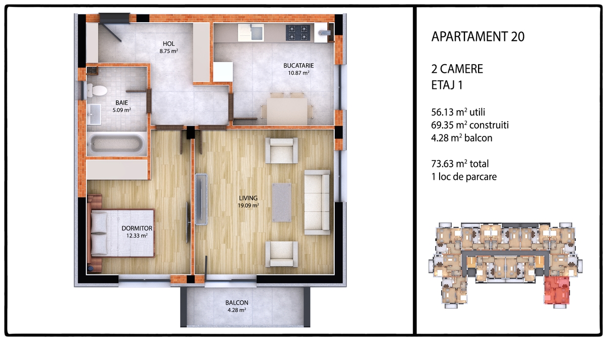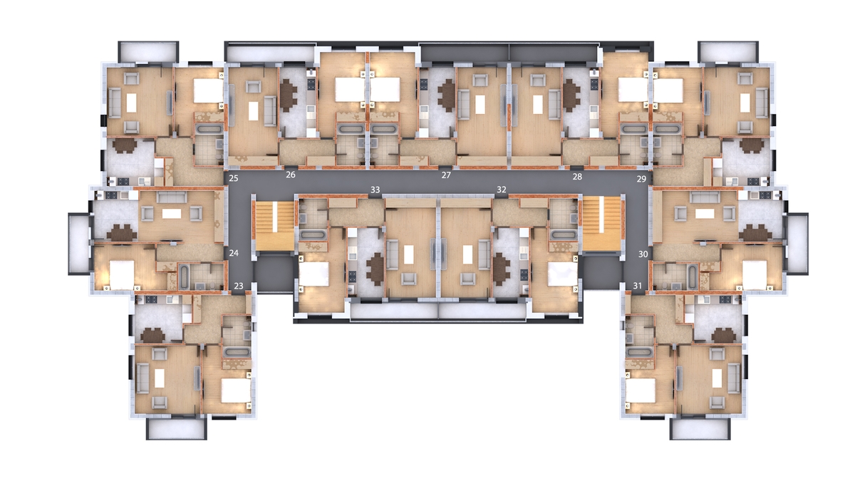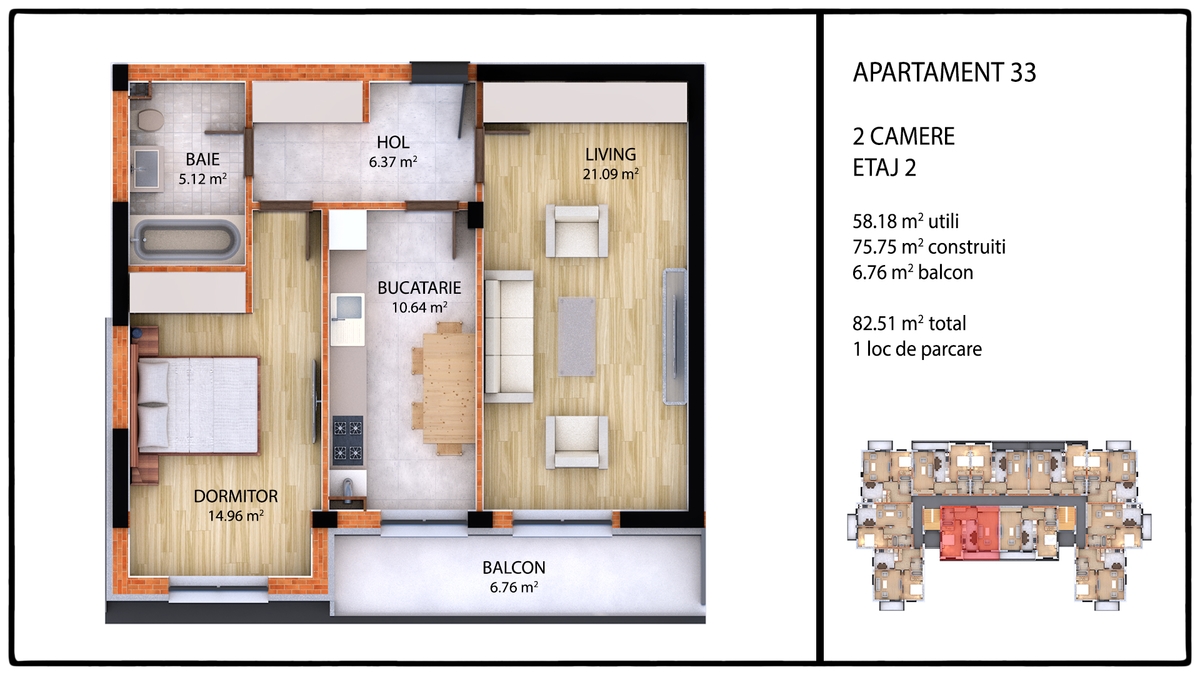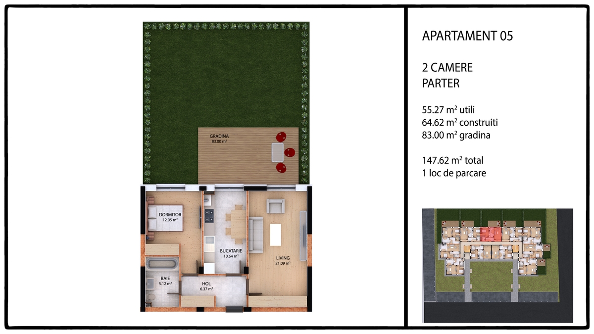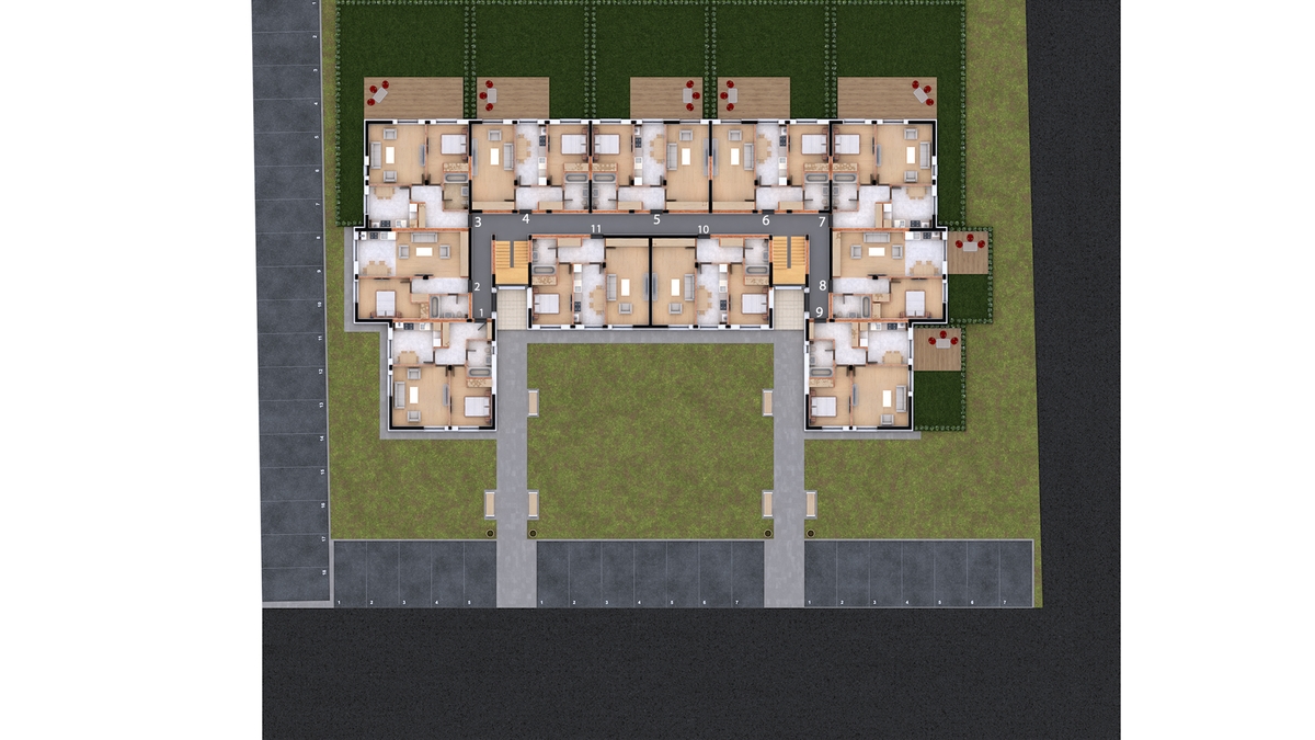 MIRADOR dispune de 40 apartamente de 2 camere si 44 locuri de parcare.