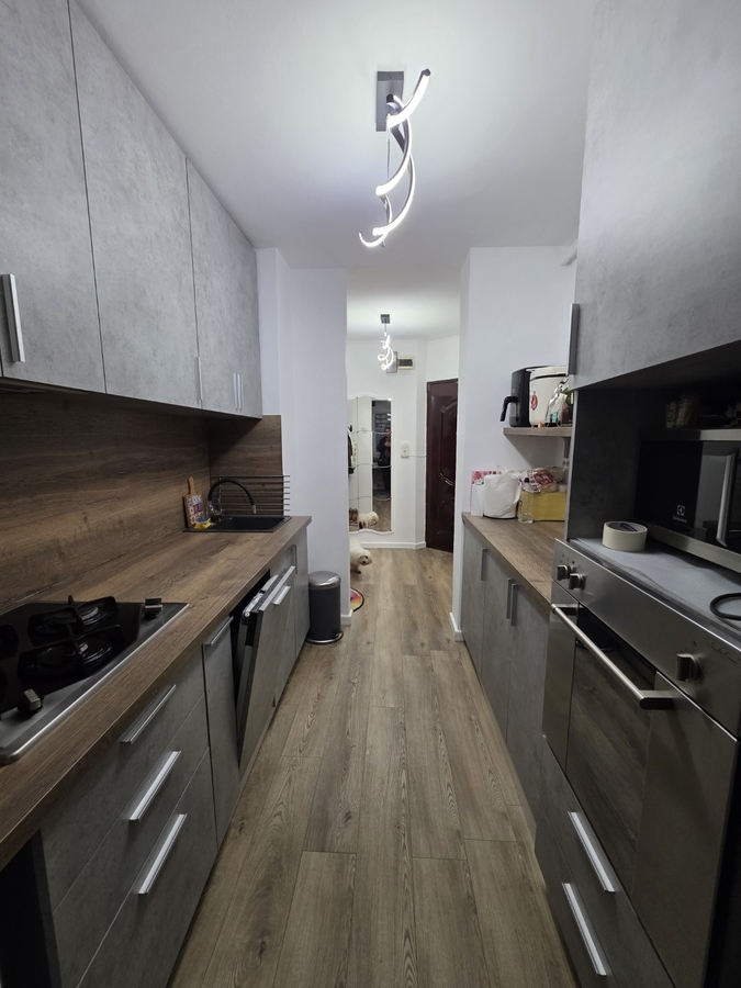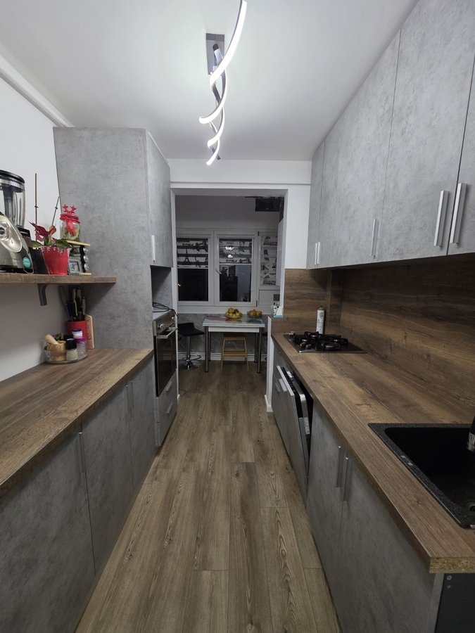 Locuinta este mobilata si utilata, fiind complet renovata. Beneficiaza de instalatii electrice si sanitare noi, tamplarie termopan, gresie, faianta, parchet, usa metalica si usi interioare inlocuite integral. Apartamentul dispune de centrala termica proprie, iar baia este prevazuta cu geam pentru aerisire naturala.