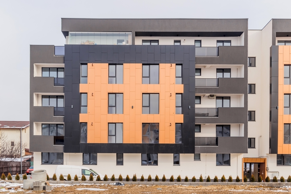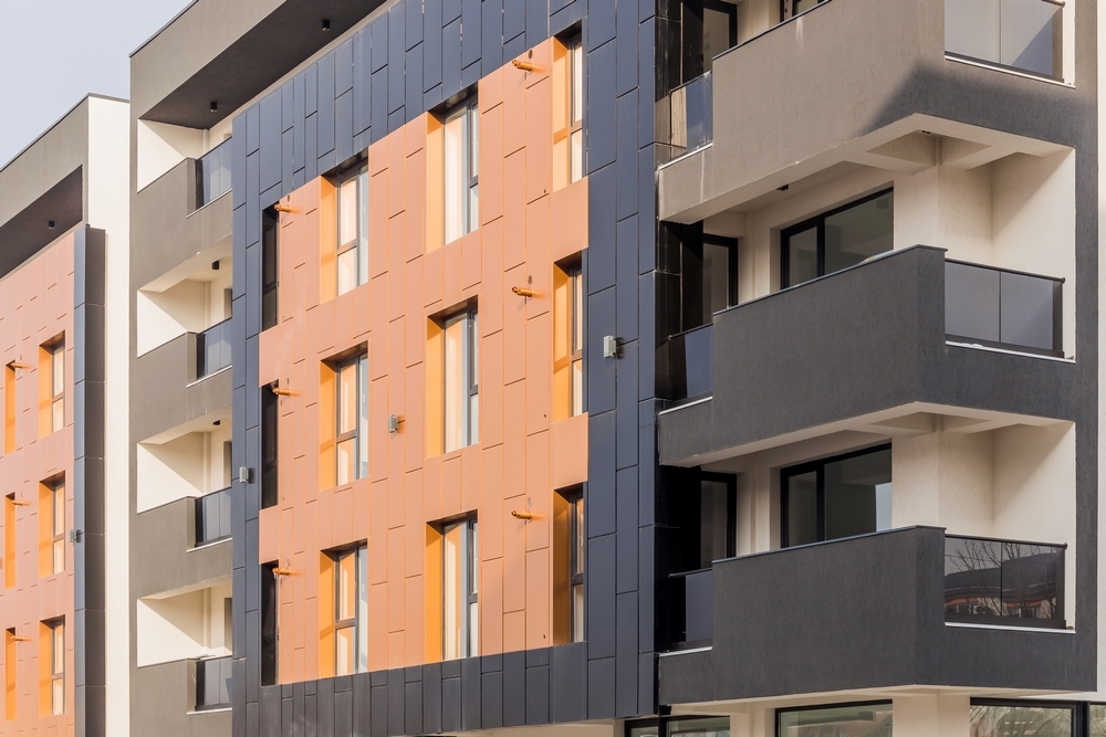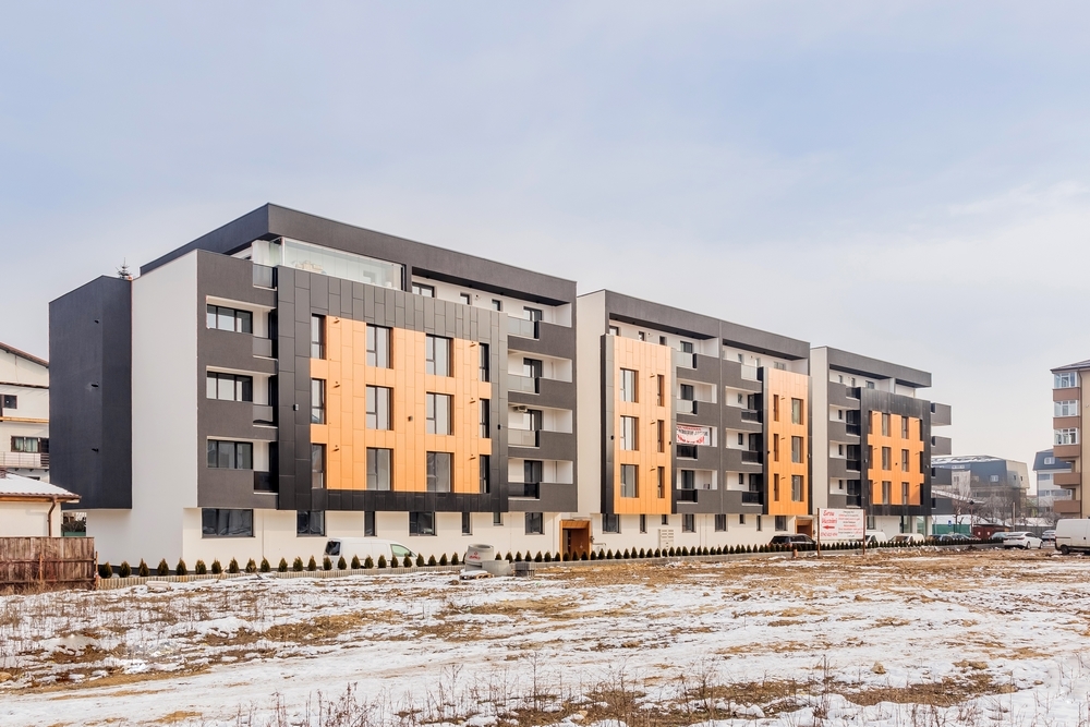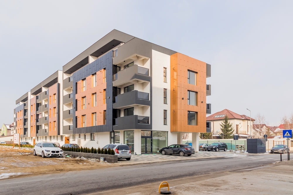 Imobilul dispune de fatade ventilate, fiind partial placat cu unul dintre cele mai bune materiale si anume panouri din aluminiu (Alucobond).