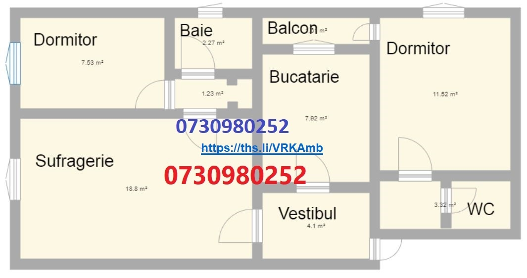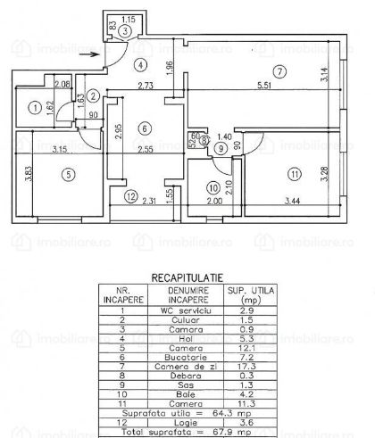 S. utila: 64.30 mp + logie 3.6 mp S. totala : 67.9 mp