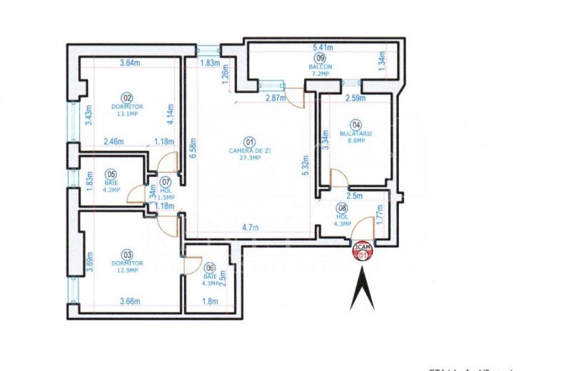 Apartament cu 3 camere, in suprafata utila de 83 mp, disponibil la etajul 1 al imobilului NearCenter Residence Agricultori. Apartamentul dispune de living, 2 dormitoare, bucatarie inchisa, 2 bai si balcon.