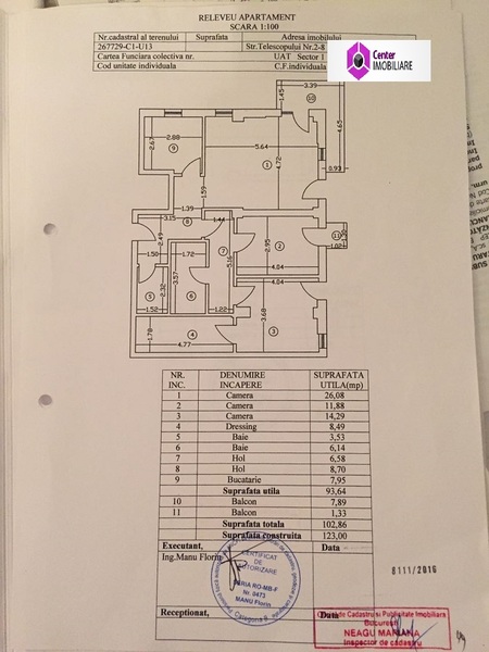 AVIATIEI - STR.TELESCOPULUI - Vand apartament deosebit 3 camere, c-tie 2017, etaj 2/3, 2 bai, 2 balcoane,dressing, 103 mp, se poate vinde finisat sau fara finisaje, zona linistita, garaj subteran, pret 129.000 fara finisaje,135.000 euro/finisaje incluse ( run 8614 )
