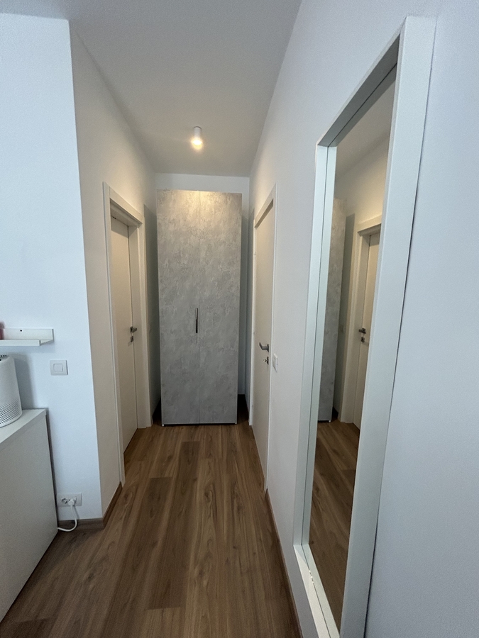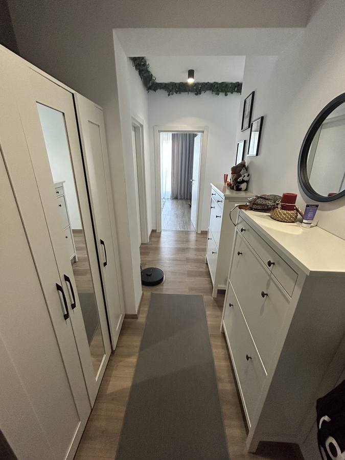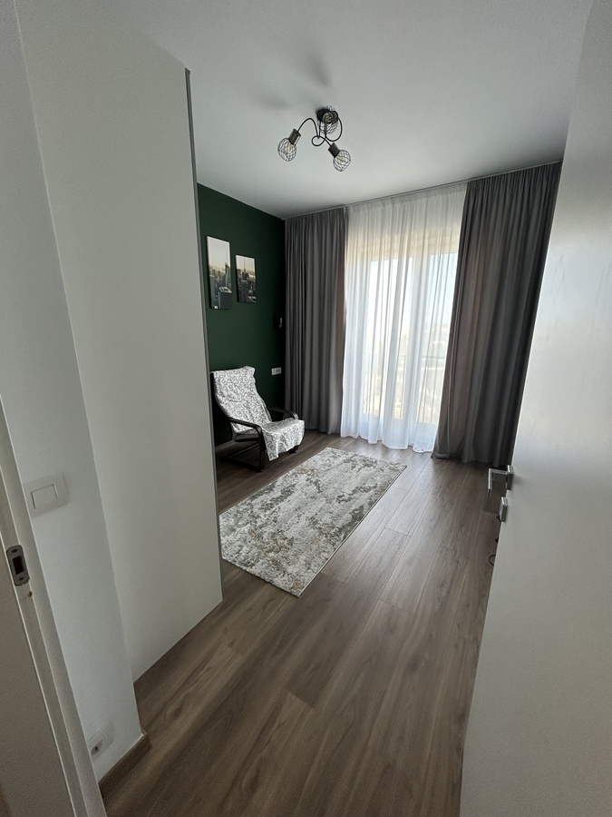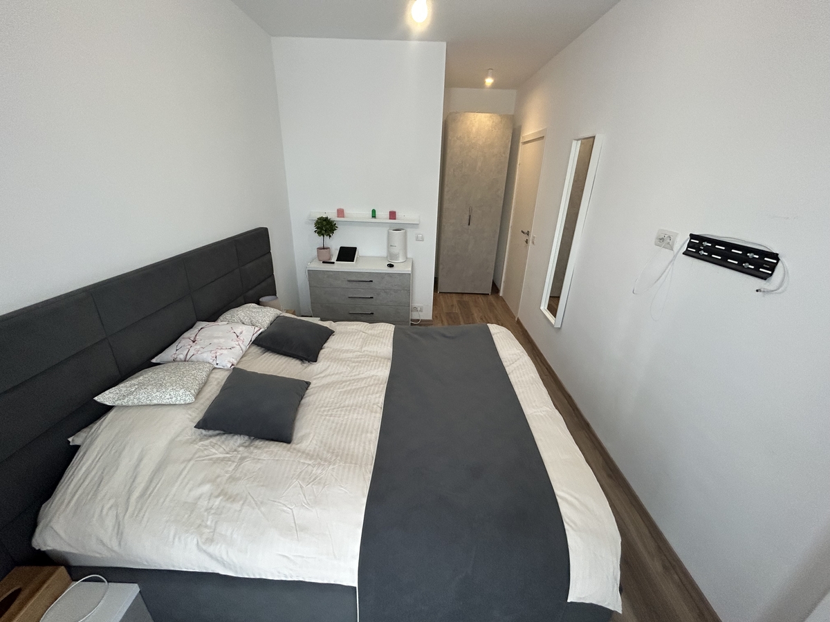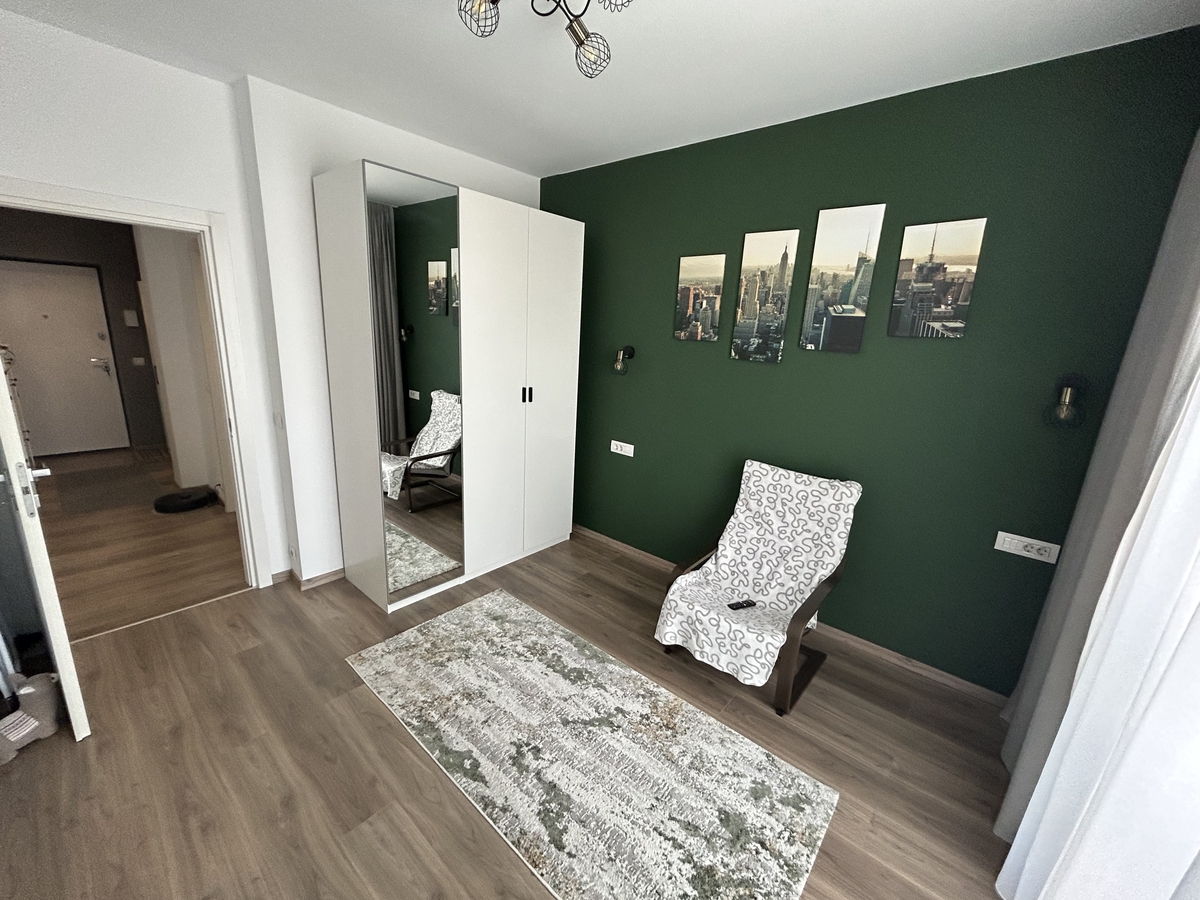 - livingul dispune de dressing spatios, canapea extensibila, comoda si etajere, aer conditionat
