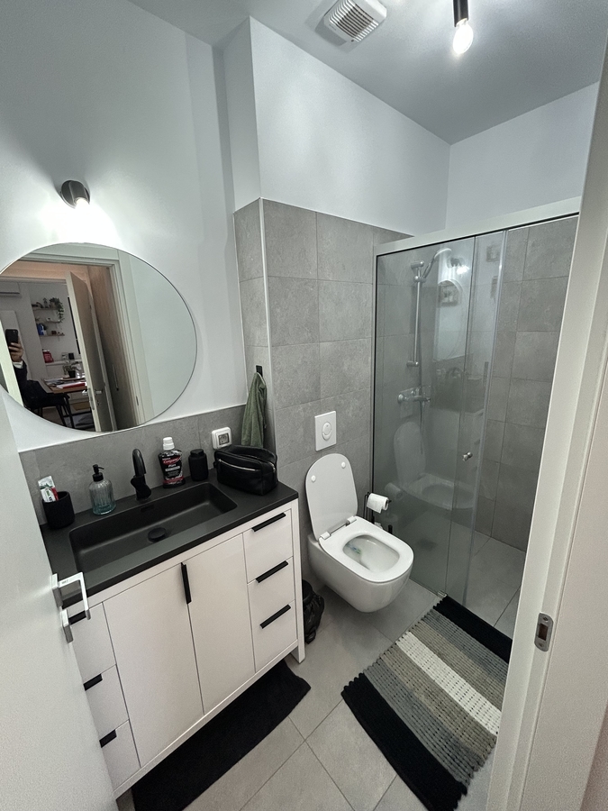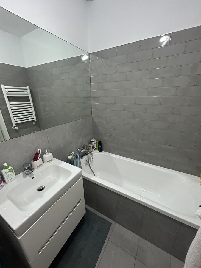 - baie mare dispune de ventilator, toate obiectele sanitare,