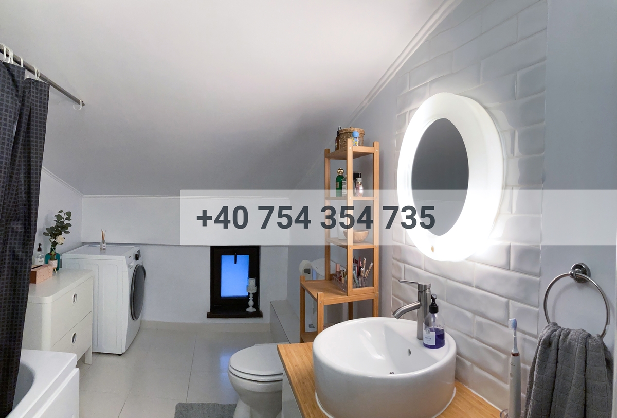 Organizare incaperi: hol, bucatarie separata, 2 dormitoare, living, baie cu geam, balcon mic deschis. Accesul se face din hol (complet decomandat). Etaj 3/3, 2 camere tip mansarda, 81.80mp utili, centrala termica proprie, aer conditionat, electrocasnice: frigider, cuptor electric + plita pe gaz + hota, cuptor cu microunde, masina de spalat cu uscator, TV, mobilier.
