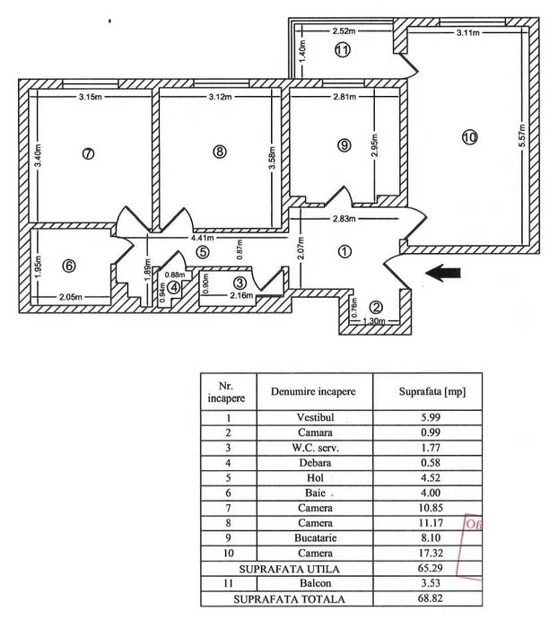Optiuni interior: 2 grupuri sanitare Aer conditionat Apometre Balcon Contor gaze Debara Inst. electrice noi Inst. sanitare noi Izolatie termica Renovat recent Repartitoare caldura Termopan Usa metalica