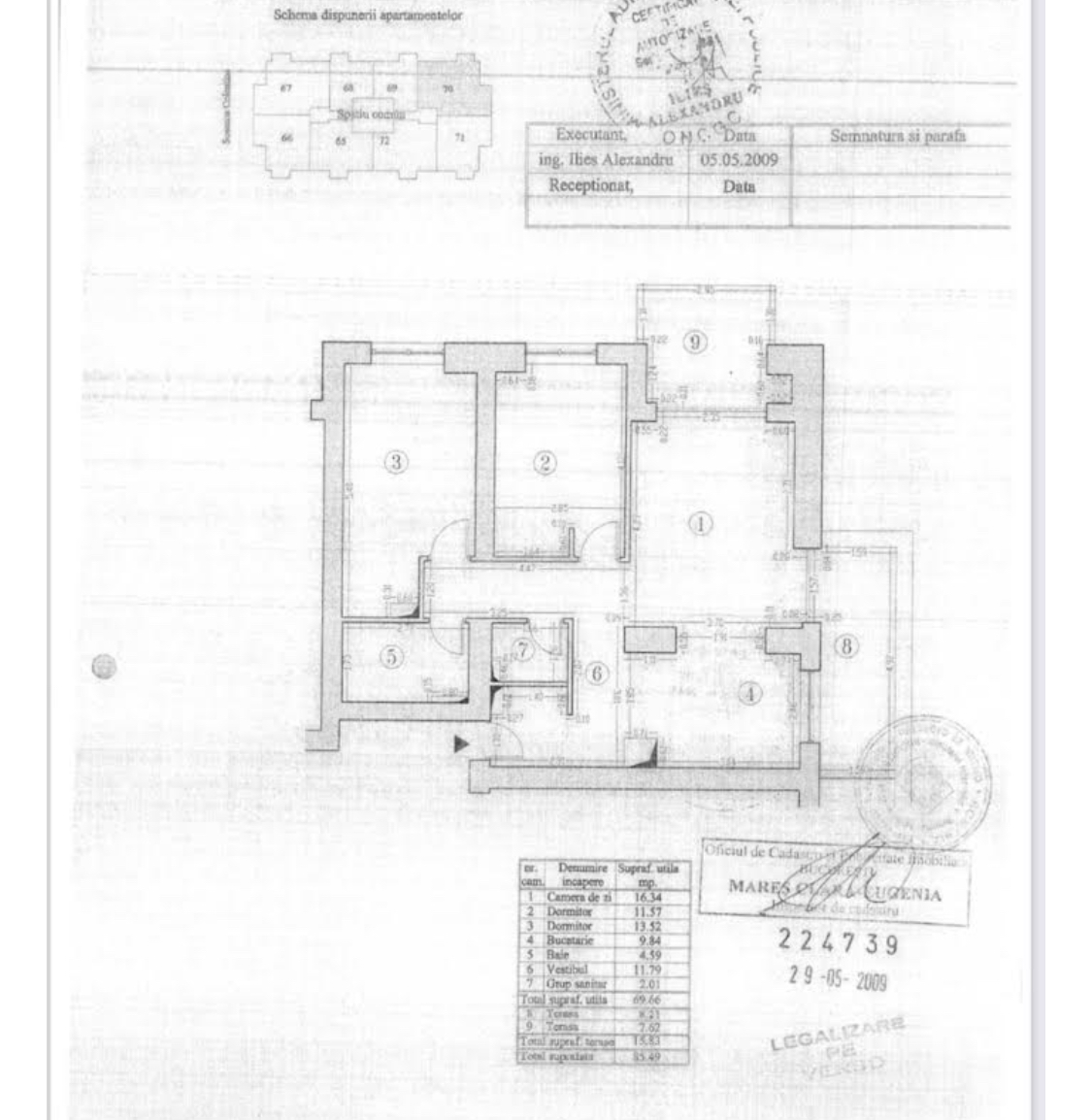 Apartamentul este situat la etajul 8/9 si 10Tehnic cu o vedere superba catre un cartier de vile, departe de zgomotul bulevardului mare. Are o suprafata de 70 mp utili la interior plus 2 terase, una de 7mp utili si cealalta de 8mp utili. Apartamentul are multiple imbunatatiri: Gresia, faianta, parchetul,obiectele sanitare, bateriile nu sunt cele de la dezvoltator, ci : marca undefasa(G si F), parchet triplustratificat din lemn (16mm grosime), Bateriile de lux: Ideal Standard la cada cu Hidromasaj, aer conditionat in living si Dormitorul mare, intrerupatoarele, in toate camerele, au fost schimbate cu unele care au Tehnologia Touch Sensitive.