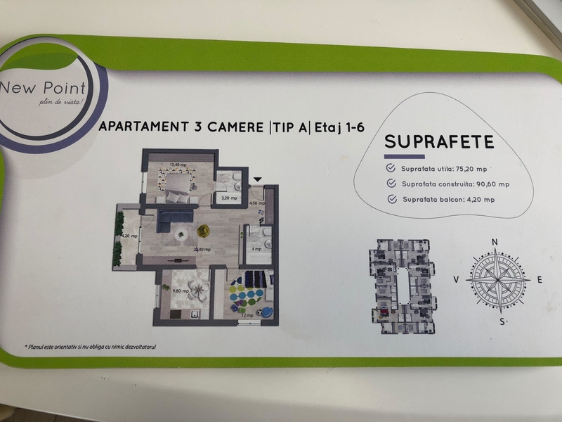 Cedare antecontract apartament 3 camere New Point Pipera + loc parcare,