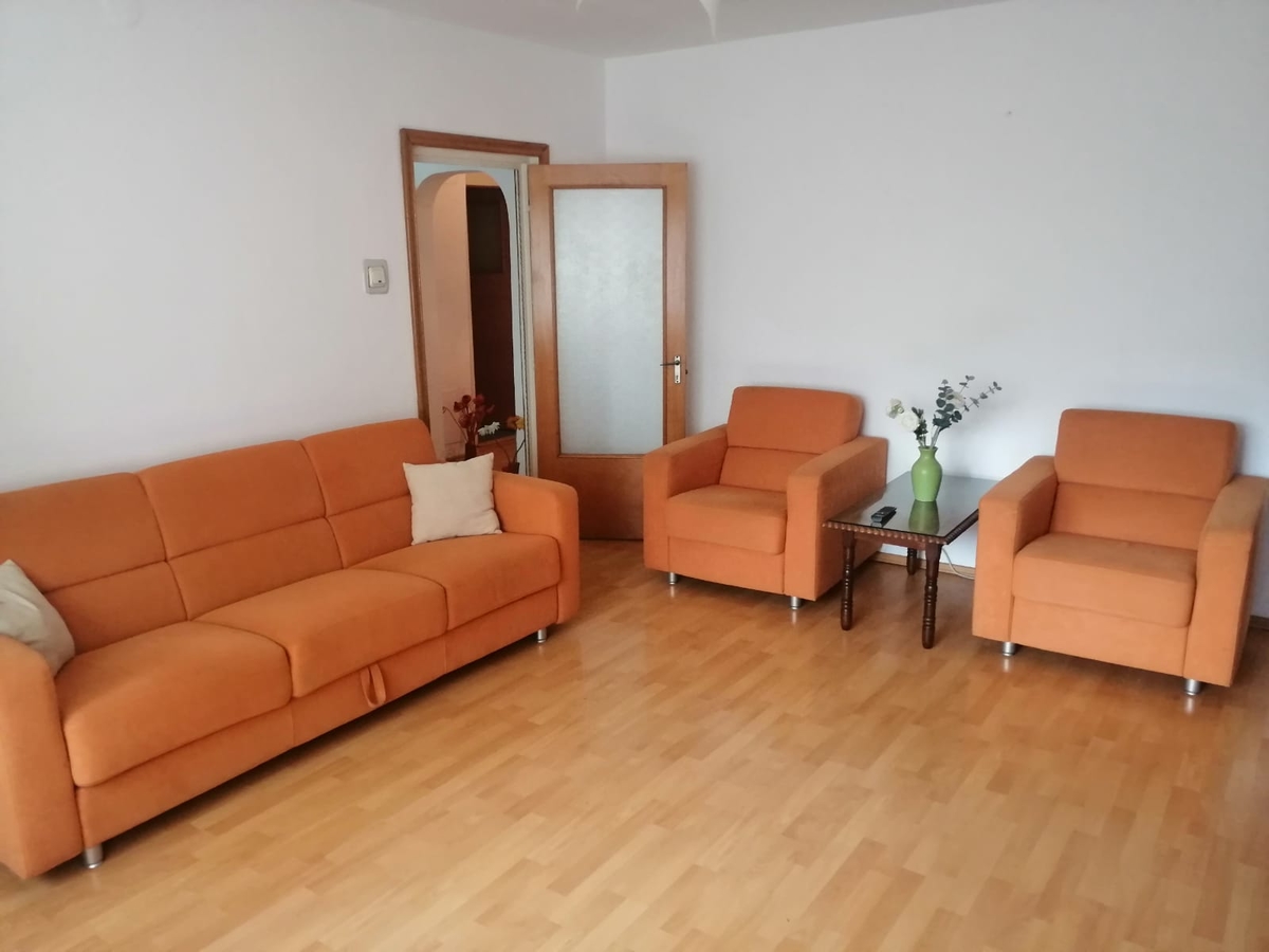 Ap. 3 camere la etajul 2, 1990, suprafata 74 mp si balcon 4 mp, 2 bai, bucatarie de 10 mp, apometre, debara, termopan, usa metalica, gresie, faianta, parchet, apometre. Negociabil