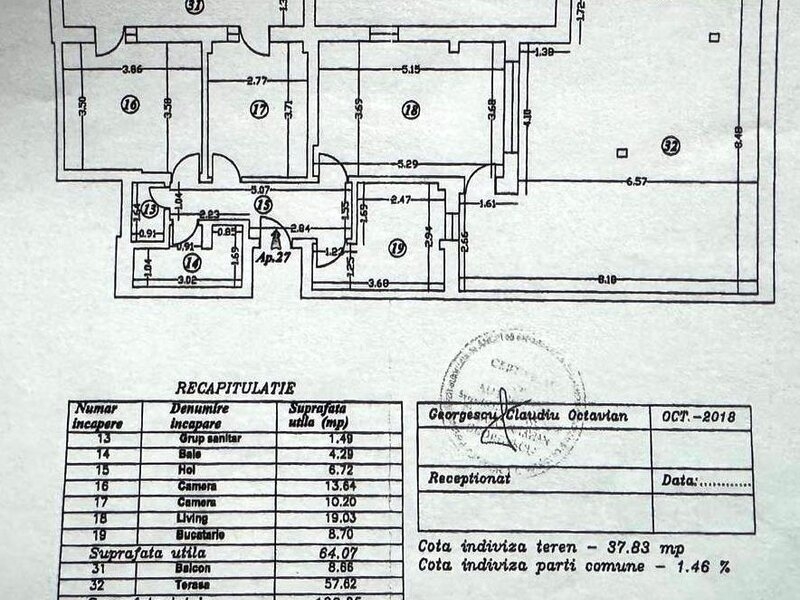 Optiuni interior: 2 grupuri sanitare Apometre Balcon Centrala termica Debara Inst. sanitare noi Renovat recent Usa metalica