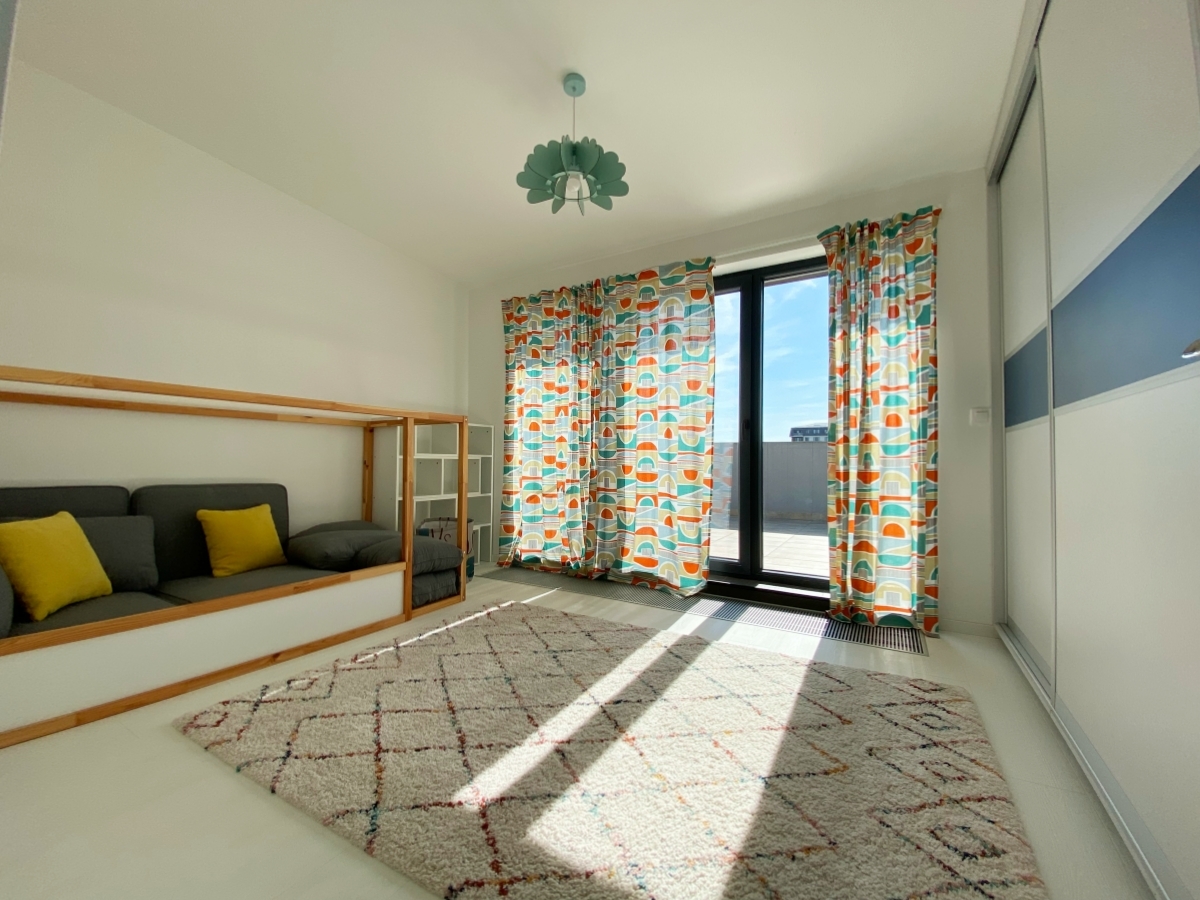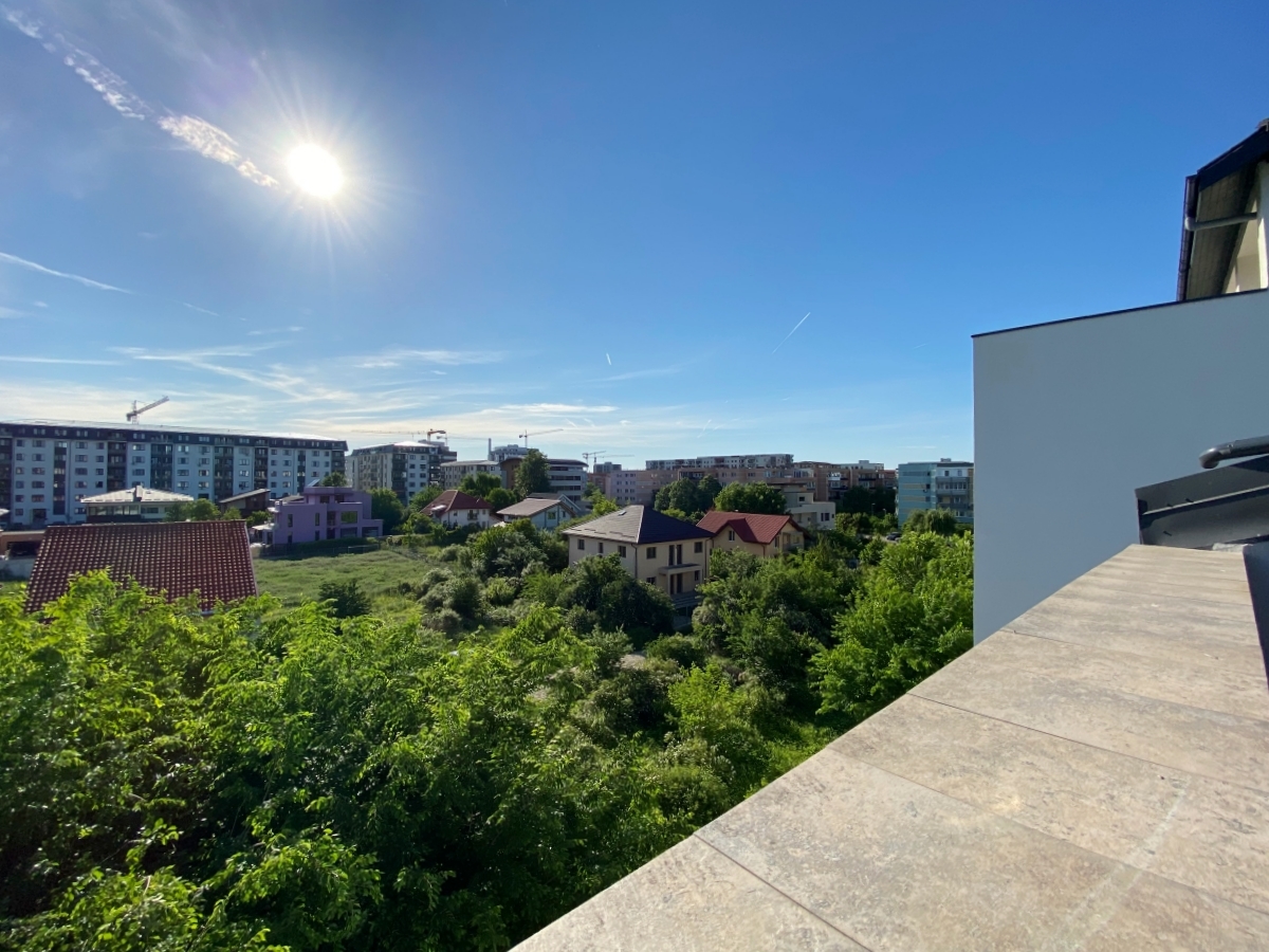 Apartamentul este tip penthouse si se bucura de o terasa de 45mp (cu sistem de degivrare), cu o priveliste cum mai rar se gasesc in Bucuresti.