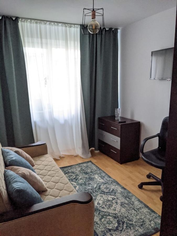 cf. 1, etaj 5/9, renovat, gresie, faianta, parchet, termopan, 2 balcoane inchise in termopan, geam la baie, instalatie sanitara schimbata, aer conditionat, usa metalica, bucatarie mobilata si utilata, se vinde semimobilat. La 5 minute de Auchan, Parc Moghioros si tramvai 41. Pozitie si zona foarte buna. Pret usor discutabil,