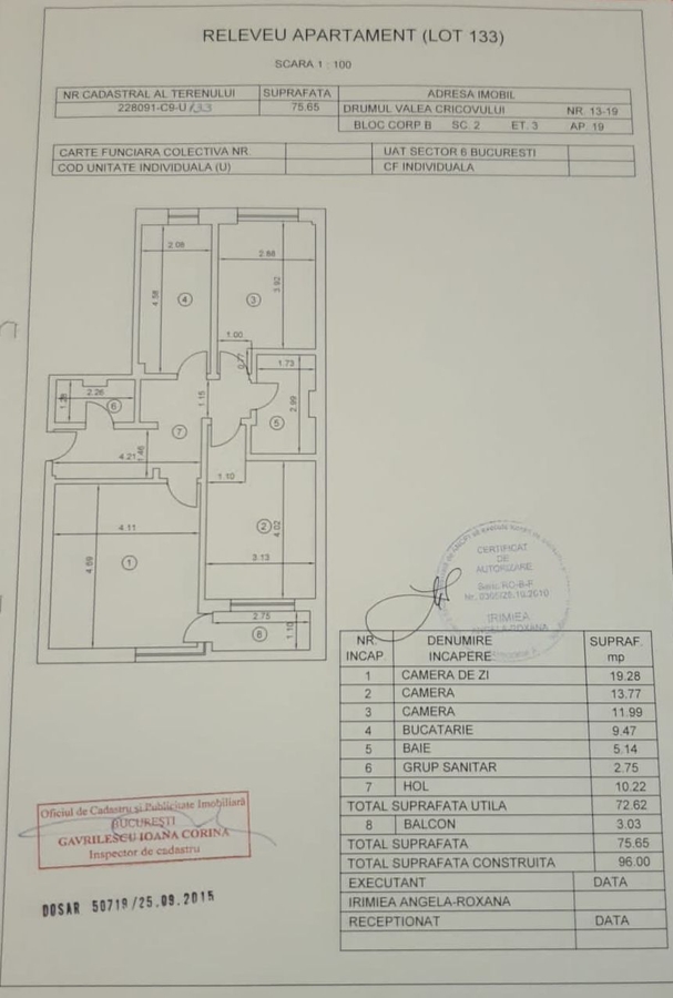 Optiuni interior: 2 grupuri sanitare Aer conditionat Apometre Balcon Centrala termica Contor gaze Inst. electrice noi Inst. sanitare noi Izolatie termica Termopan Usa metalica