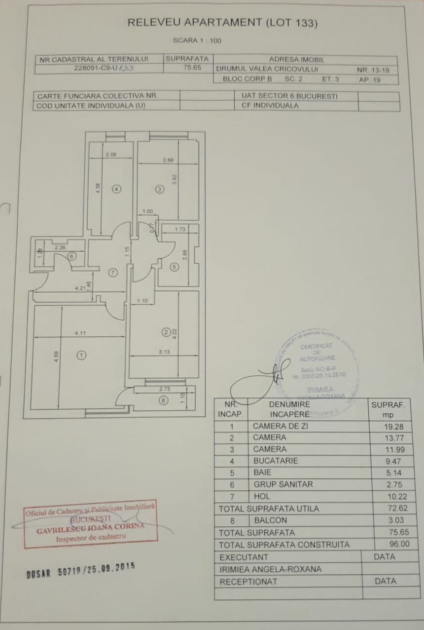 Apartamentul dispune de loc de parcare subterana si acces facil la metrou Valea Ialomitei.