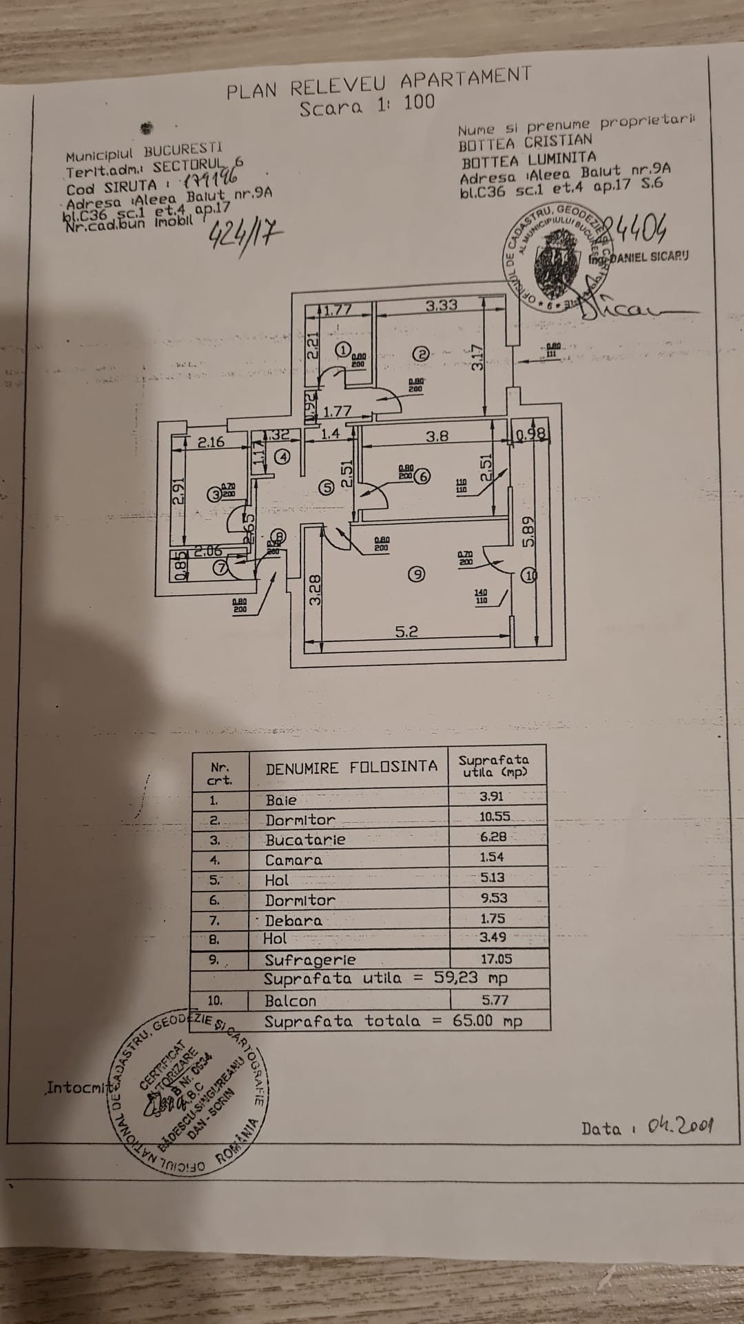 Apartamentul se vinde fara urmatoarele piese de mobilier si electrocasnice: