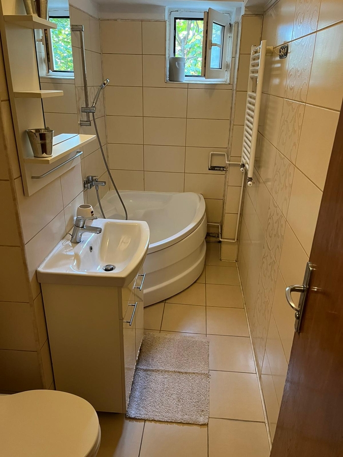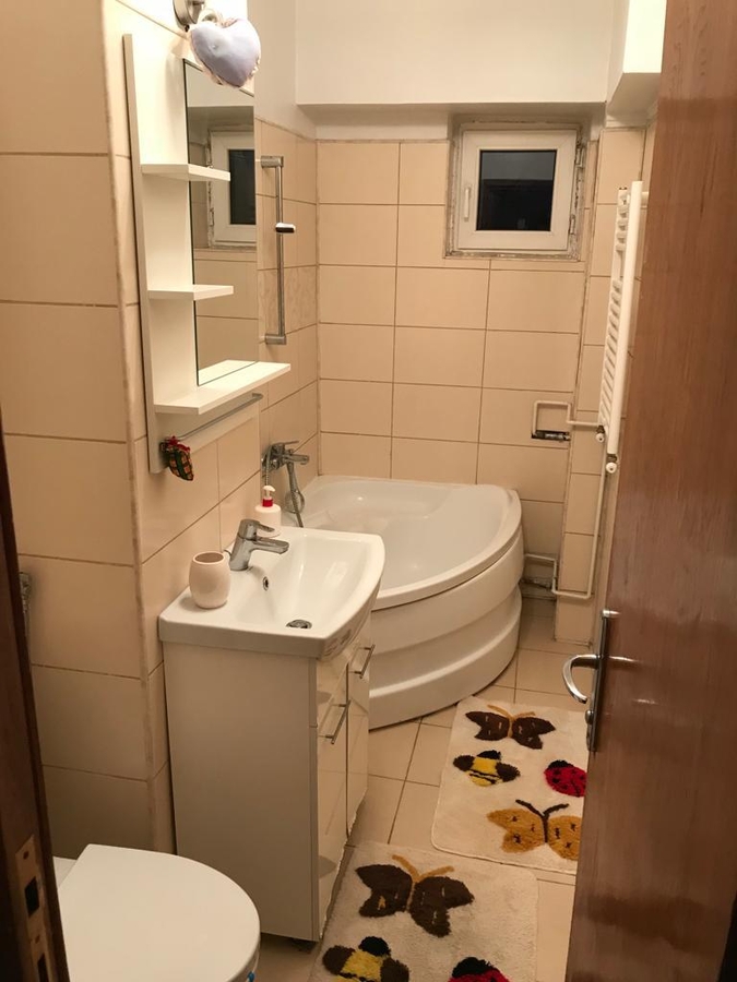 Acesta a fost renovat acum zece ani atunci cand au fost schimbate si instalatiile electrice si sanitare. Dispune de tamplarie cu geam termopan, parchet, gresie, faianta, usa metalica, aer conditionat.