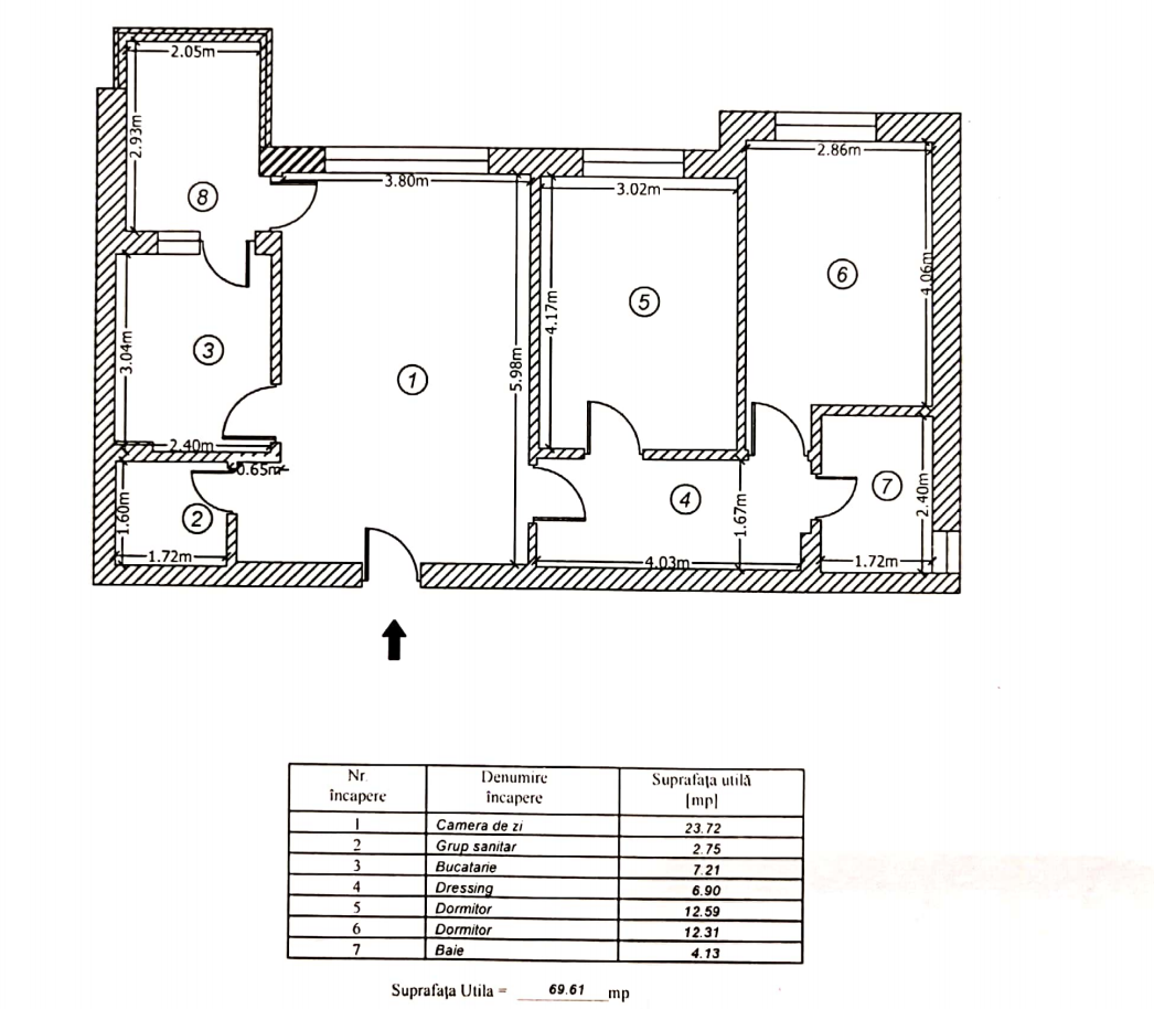 Pozitionarea geografica - Vest (bucatarie, sufragerie, dormitoare x 2) / Nord (baia mare).