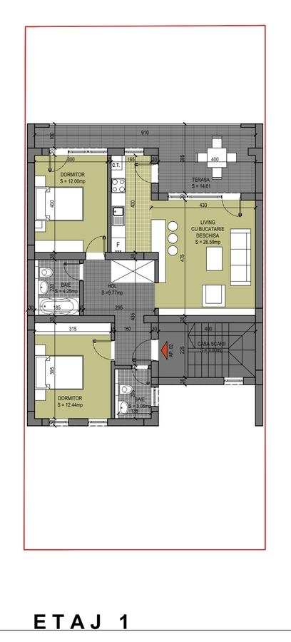 Apartamentul este alcatuit din 2 dormitoare, un living cu bucatarie open space, 2 bai si o loja de 16 mp inchisa ce reprezinta o extindere a livingului. (Mai multe detalii gasiti in planul atasat) Totodata dispune de un loc de parcare in fata imobilului, centrala proprie, incalzire prin pardoseala si termopane cu sticla tripan.