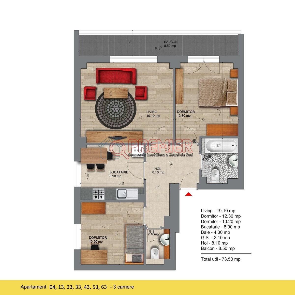 Va propun spre achizitie un apartament de 3 camere decomandat cu 2 bai si balcon de 8.5 mp in ansamblul Deco Residence. Apartamentul este situat la etajul 1/6, bloc cu 2 lifturi.