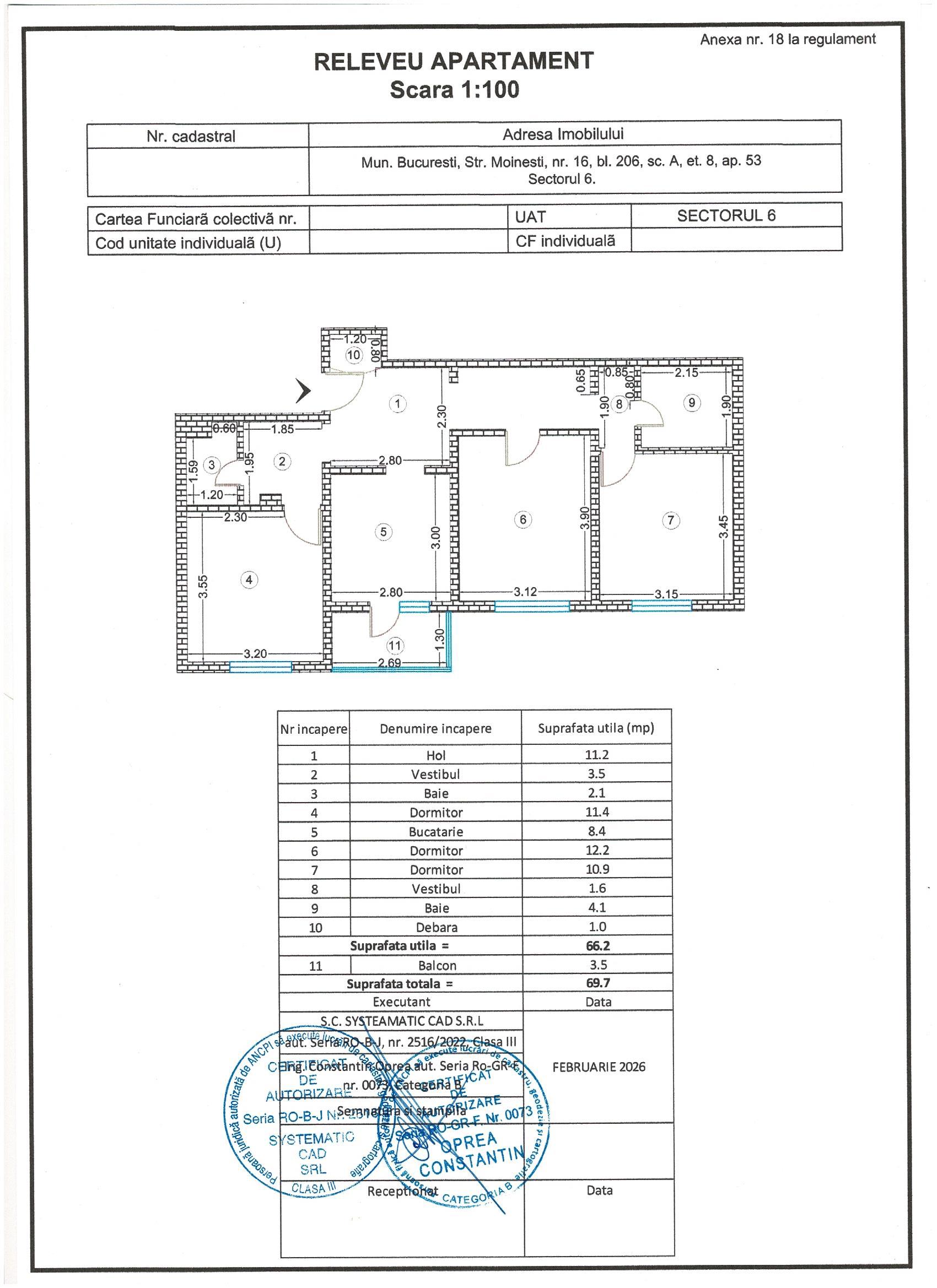 Optiuni interior: 2 grupuri sanitare Aer conditionat Apometre Balcon Centrala termica Contor gaze Debara Inst. electrice noi Inst. sanitare noi Termopan Usa metalica