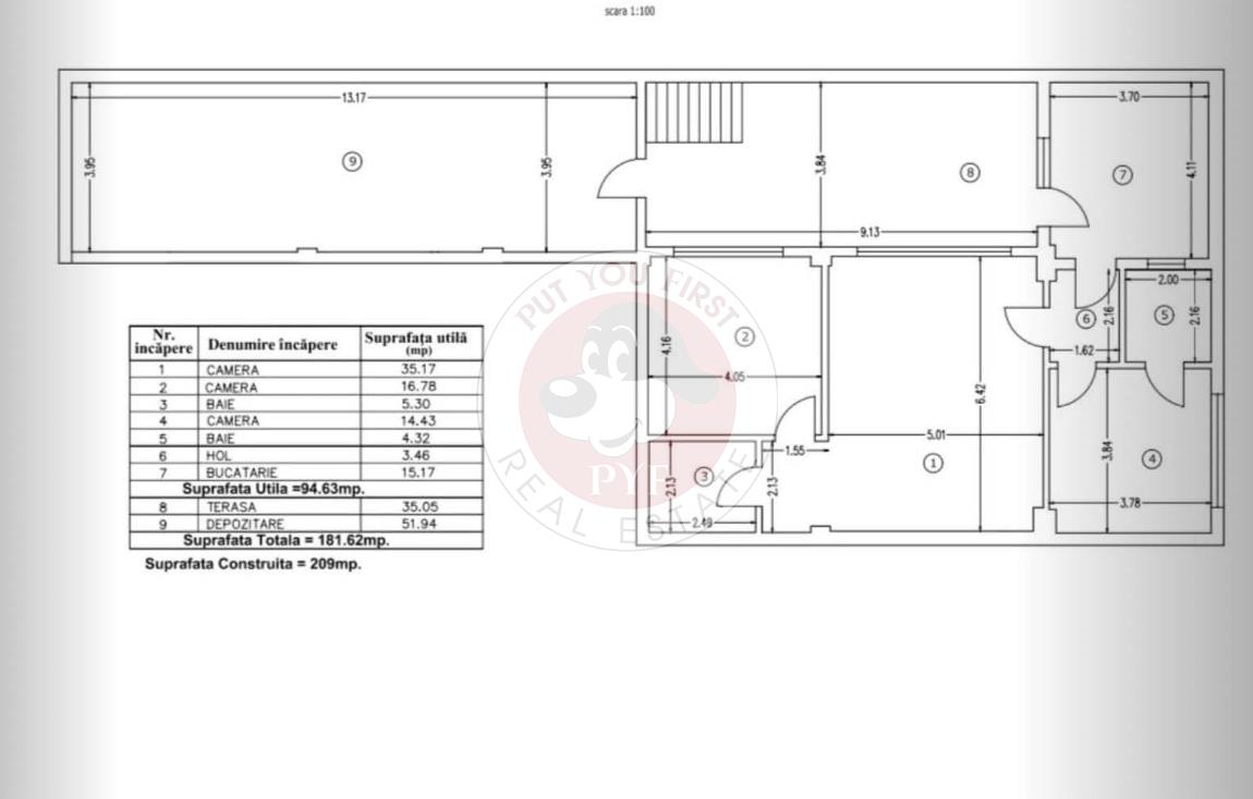 Suprafata totala: 182 mp (terasa spatiu de depozitare)
