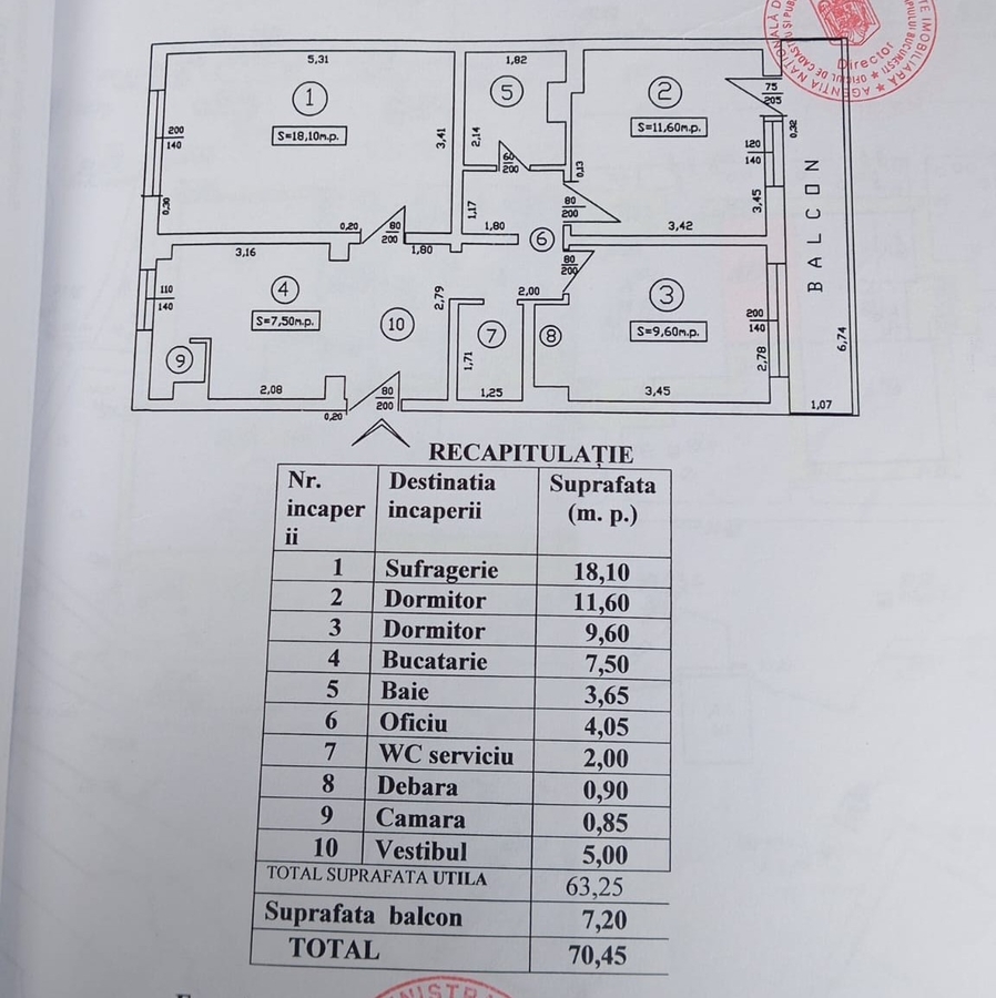 Optiuni interior: 2 grupuri sanitare Aer conditionat Apometre Balcon Debara Inst. electrice noi Inst. sanitare noi Repartitoare caldura Termopan Usa metalica