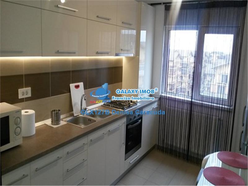 Vanzare 3 camere Militari Residence pizza Giuliano. Apartamentul este situat la etajul 5, bloc din 2015 in zona Militari Pacii Residence. Apartamentul este confort 1, cu o suprafata de 82 mp, este compus din living, 2 dormitoare, bucatarie, baie, hol, balcon.Apartamentul este mobilat, utilat lux asa cum se vede in fotografii (ambele dormitoare au pat dublu si dresinguri, sufrageria canapea extensibila si TV, bucataria cu mobila suspendata si echipata cu aragaz, frigider, masina de spalat rufe). Apartamentul are imbunatatiri moderne: gresie, faianta, termopan tripan, parchet, centrala proprie. Apartamentul se vinde mobilat , utilat asa cum se vede in fotografii. pret 86999 euro