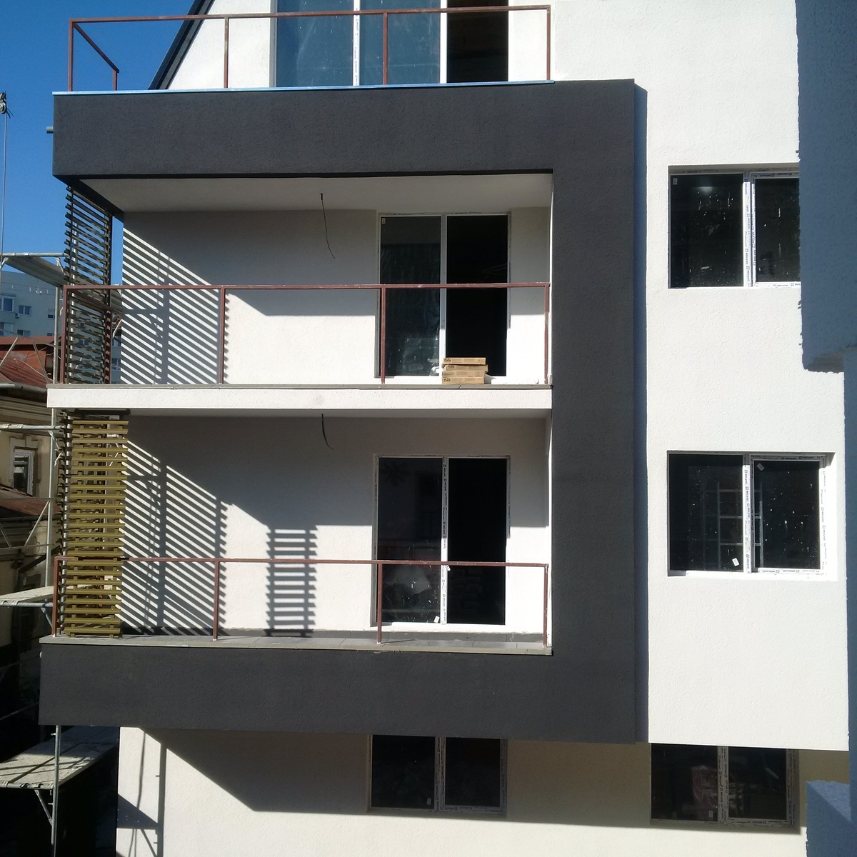 Structura de rezistenţă este compusa din stalpi, diafragme, grinzi si plansee din beton armat dimensionate în conformitate cu legislatia si normativele in vigoare. Toate spatiile comune sunt placate cu piatra naturala. Peretii de exterior sunt realizati din caramida Porotherm cu o grosime de 25 cm. Peretii exteriori sunt captusiti cu polistiren de 10 cm oferind un plus de confort termic.