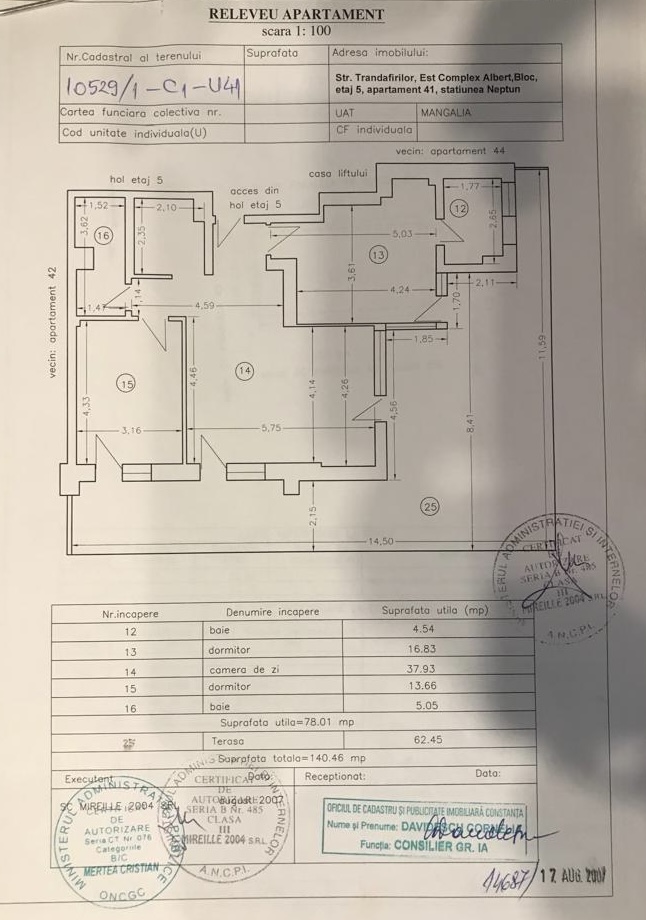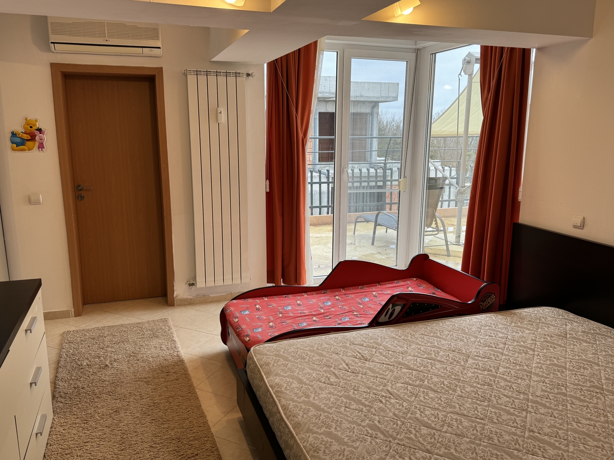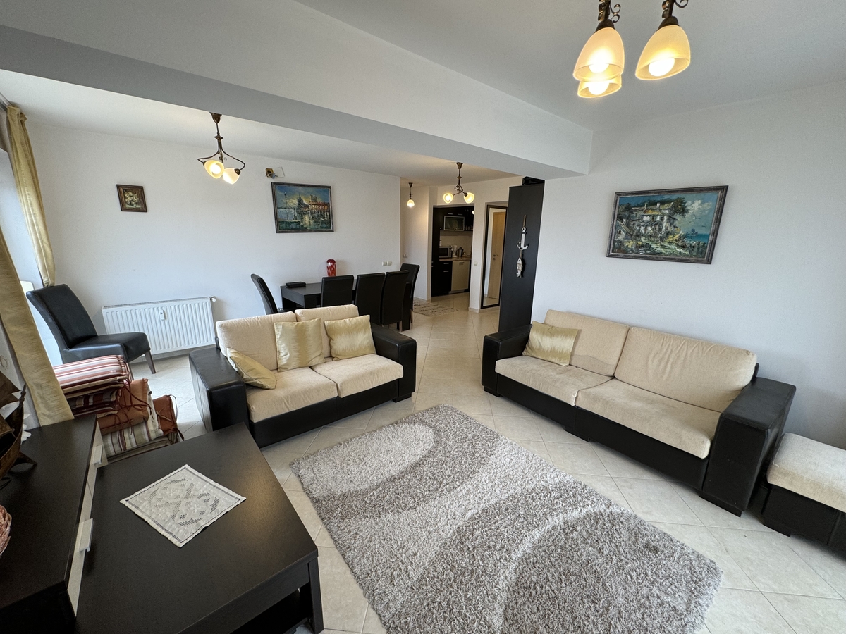 Localizat intr-una din cele mai linistite si sigure zone ale statiunii, plina de copaci si verdeata, la aproximativ 150 metri de mare, cu acces rapid din soseaua nationala, vedere frontala la parcul Administratiei Prezidentiale. Se poate utiliza atat pentru folosinta proprie cat si pentru inchiriere. Suprafata 78 mp apartament + 63 mp terasa.
