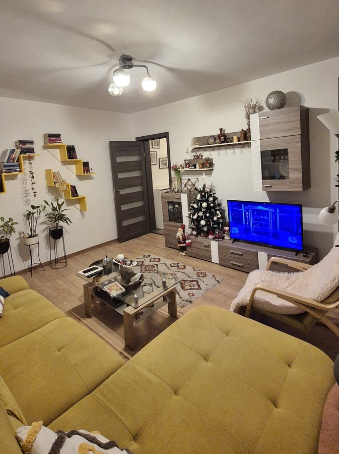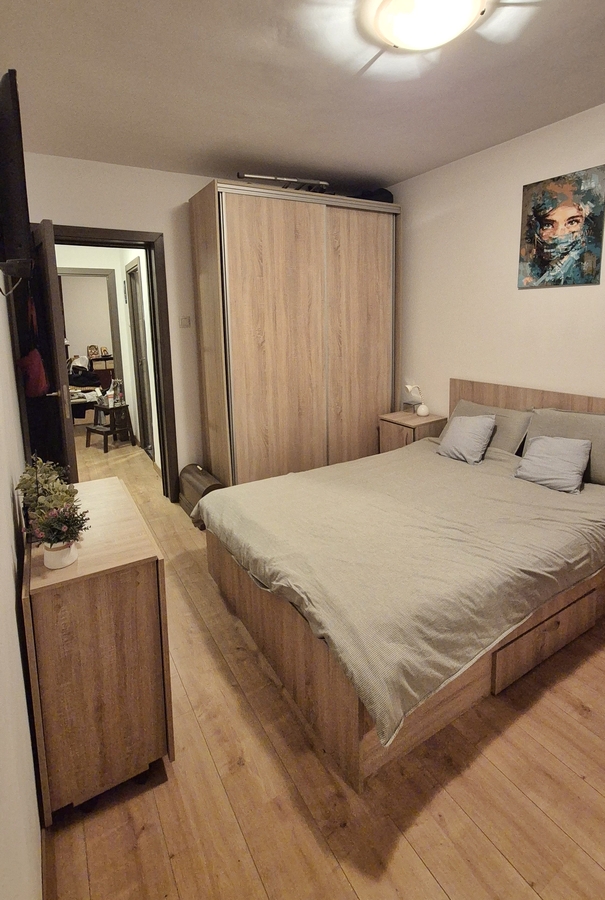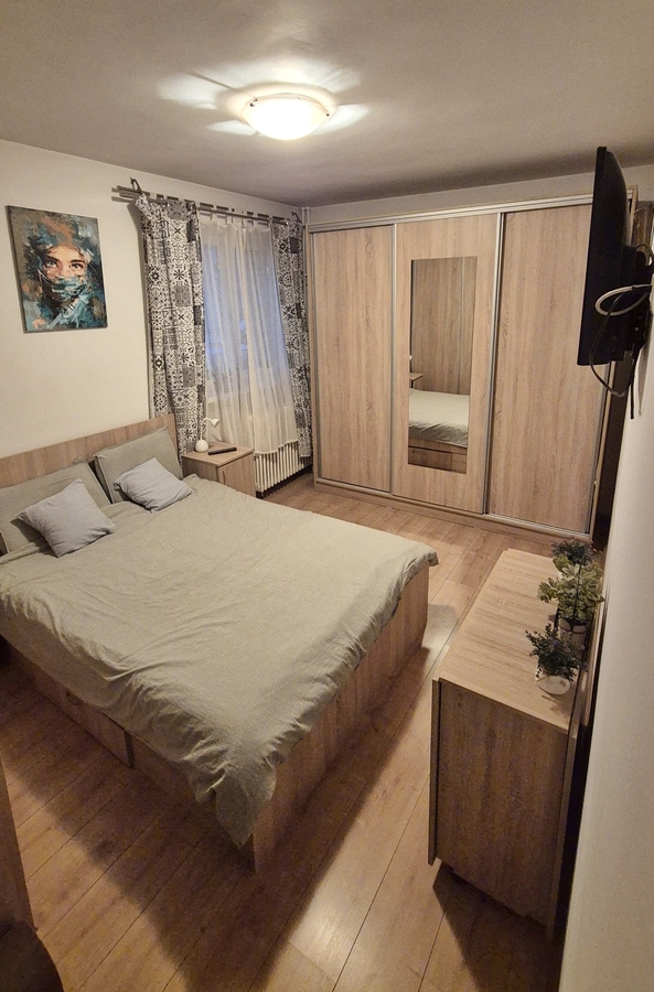 Apartamentul este bine compartimentat, fiind compus dintr-un living spatios, doua dormitoare decomandate, bucatarie complet mobilata si utilata, baie cu cabina de dus si balcon ideal pentru relaxare si depozitare. Livingul este dotat cu canapea extensibila iar dormitoarele dispun de paturi matrimoniale si dulapuri generoase.
