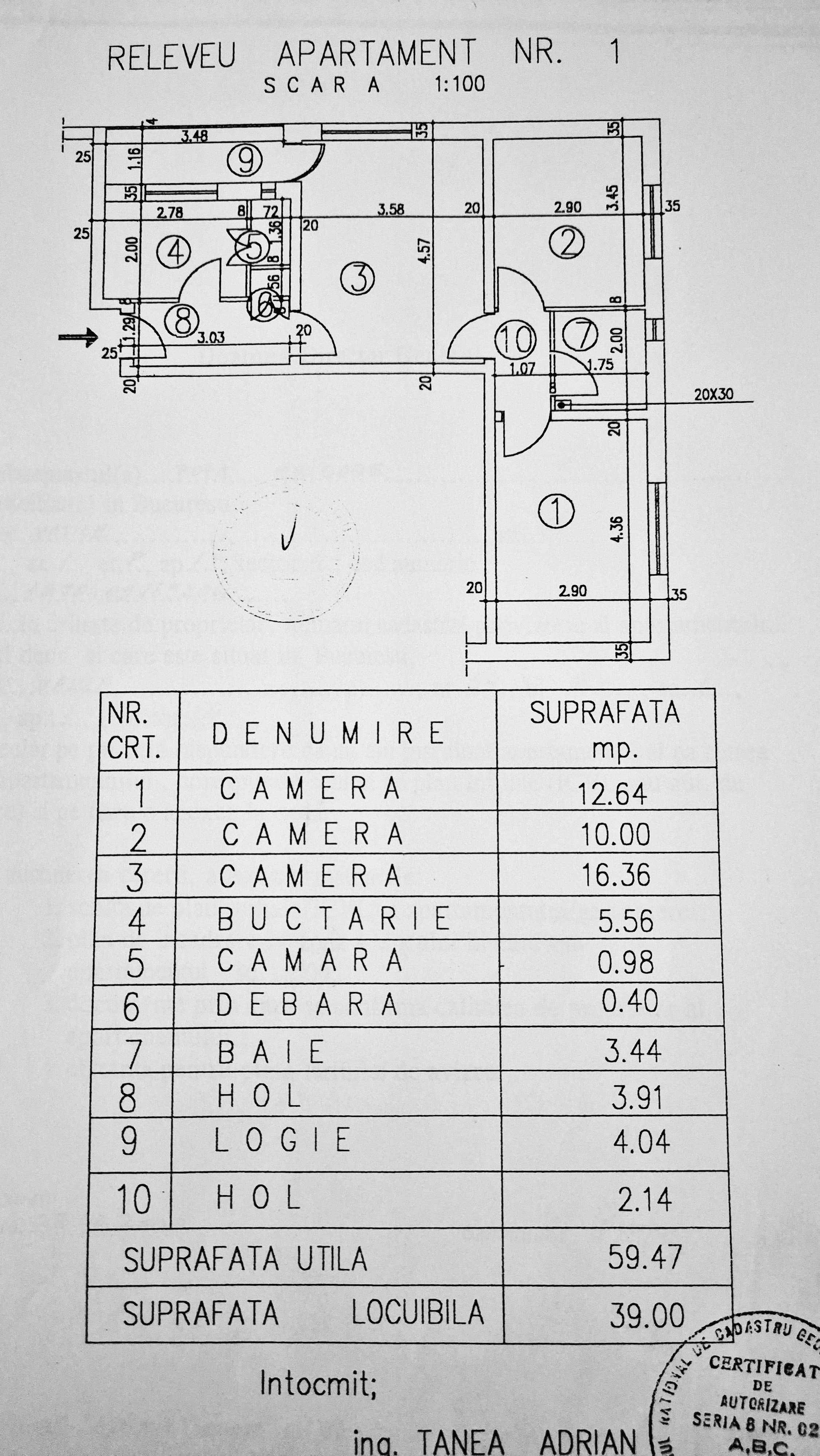 Optiuni interior: Aer conditionat Balcon Debara Inst. sanitare noi Izolatie termica Termopan Usa metalica