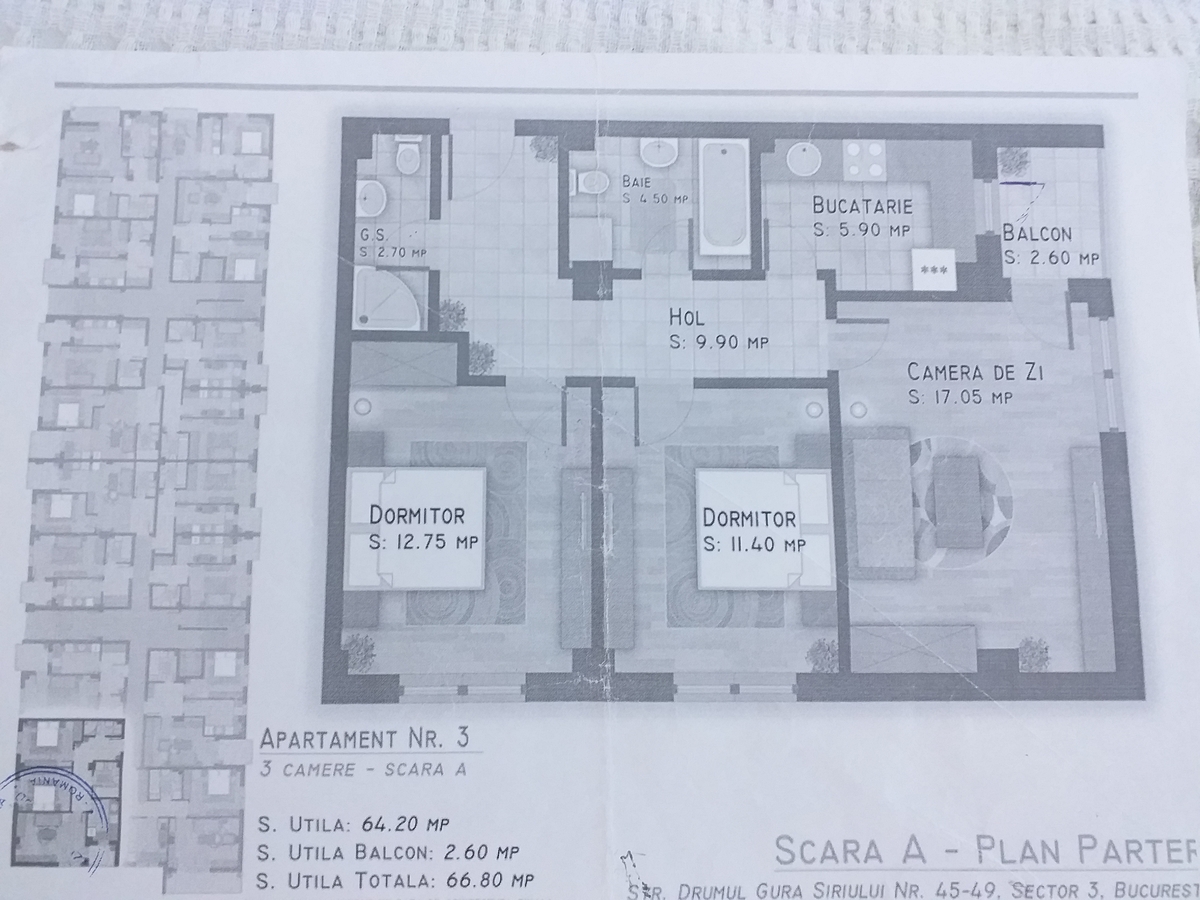 Proprietar, va ofer spre vanzare un ap cu 3 camere + parcare subterana= 98.000€ (90.000 ap.+ 8000 parcarea)