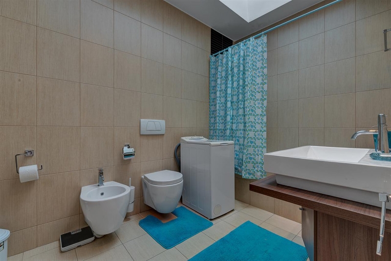Compartimentarea este bine gandita cu spatii largi si aerisite, 2 spatii generoase pentru depozitare, terasa cu loc amenajat pentru barbeque . Livingul si bucataria beneficiaza de spatii vitrate mari, ambele cu acces catre terasa privata. Bucataria este mobilata complet si echipata cu toata aparatura electrocasnica necesara : masina de spalat vase, frigider, cuptor, plita, hota, chiuveta cu baterie cu dus marca Feliu Boet – Import Spania.